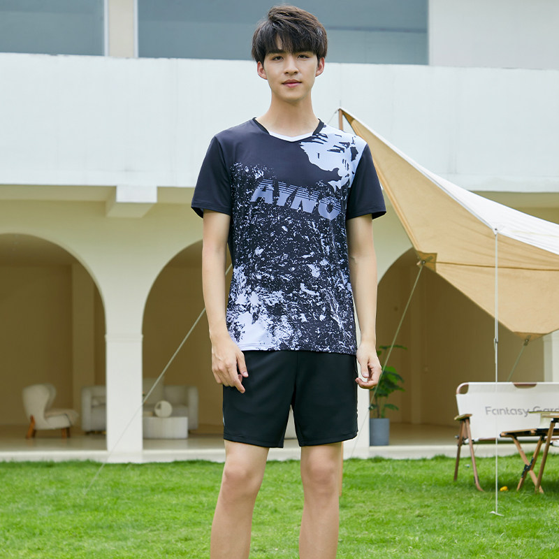 羽毛球服男女透气速干情侣运动跑步团购定制短长袖上衣网韩国套装