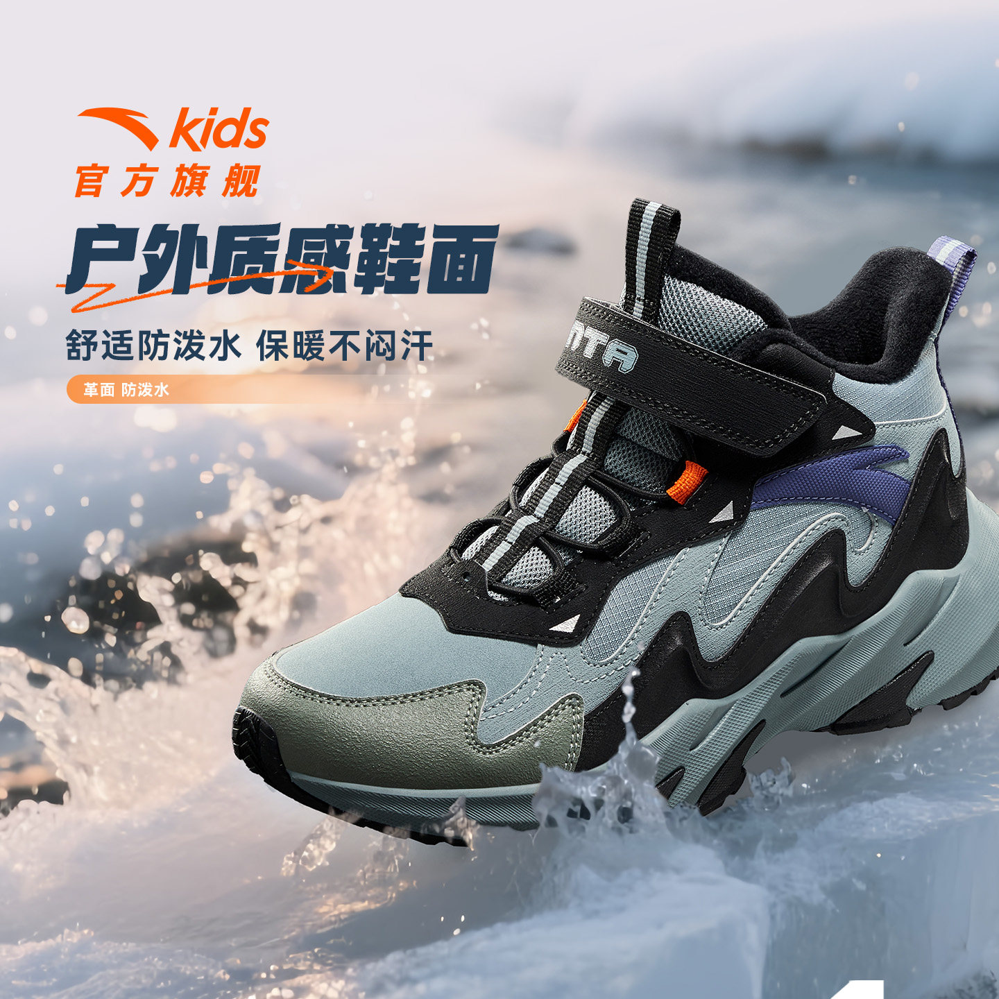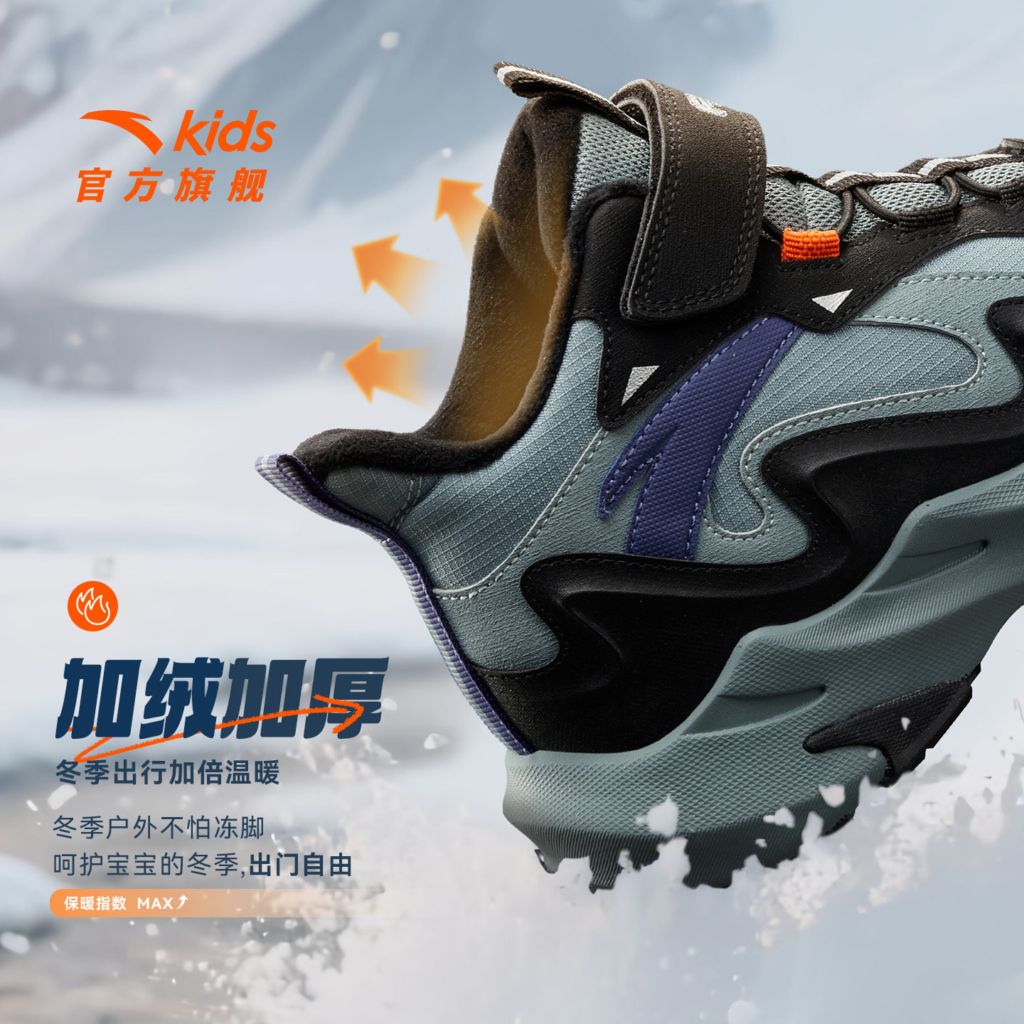 安踏儿童棉鞋加绒运动鞋男童二棉鞋保暖防滑户外大童冬季新款棉靴