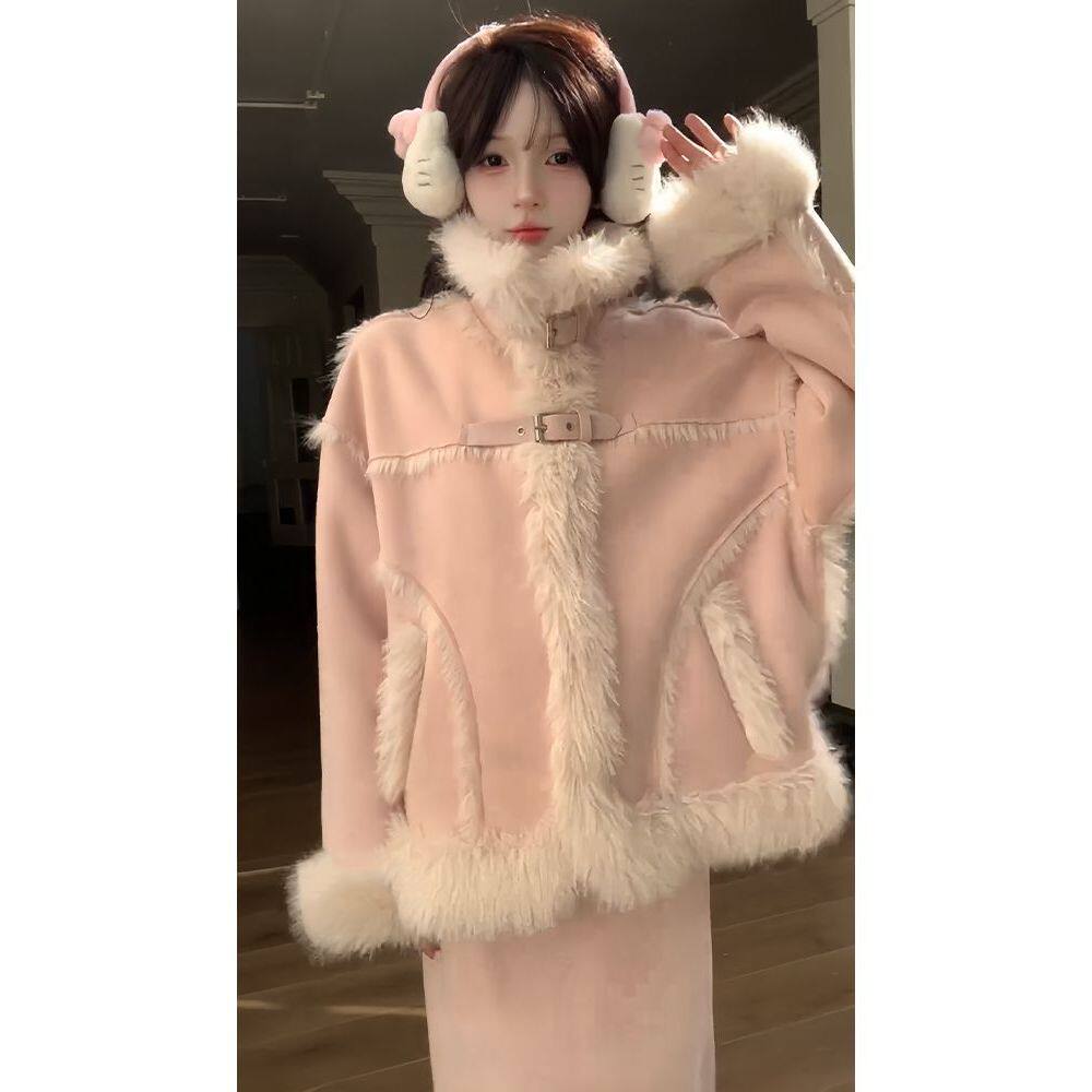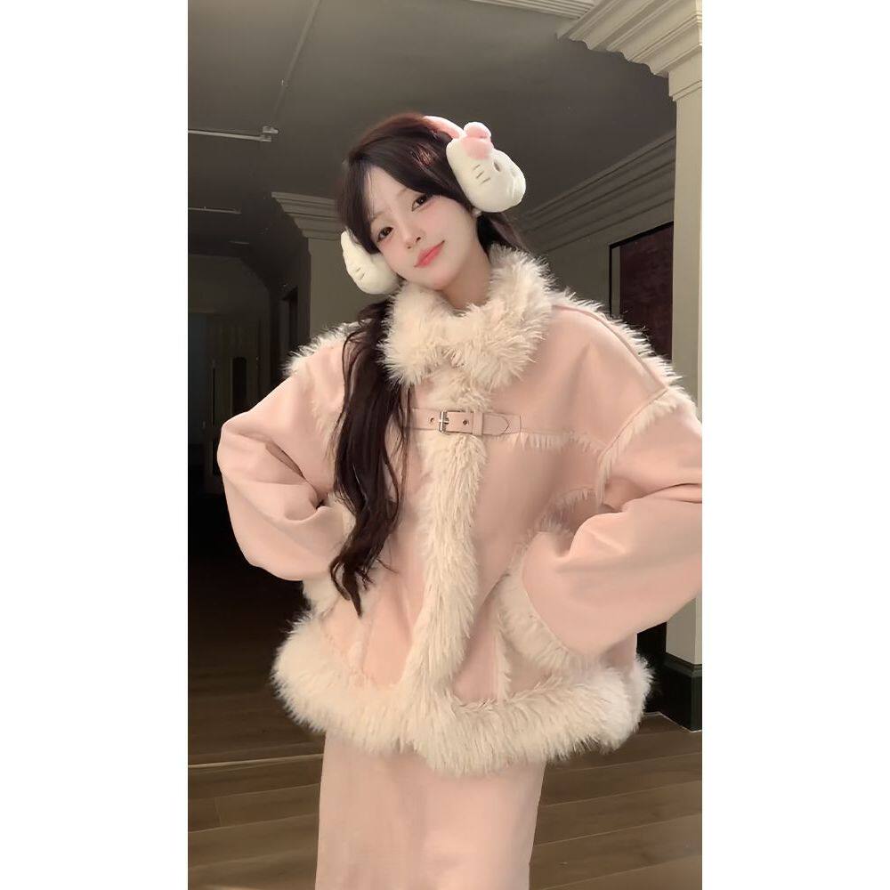 冬装搭配一整套女2025新款高级小香风外套新年毛绒绒气质两件套装