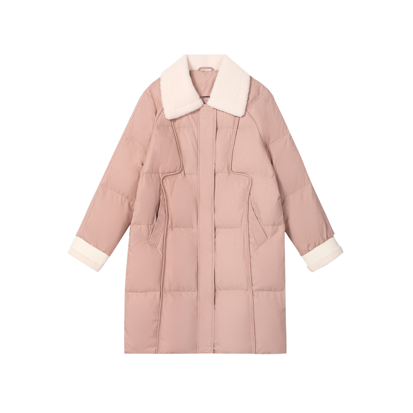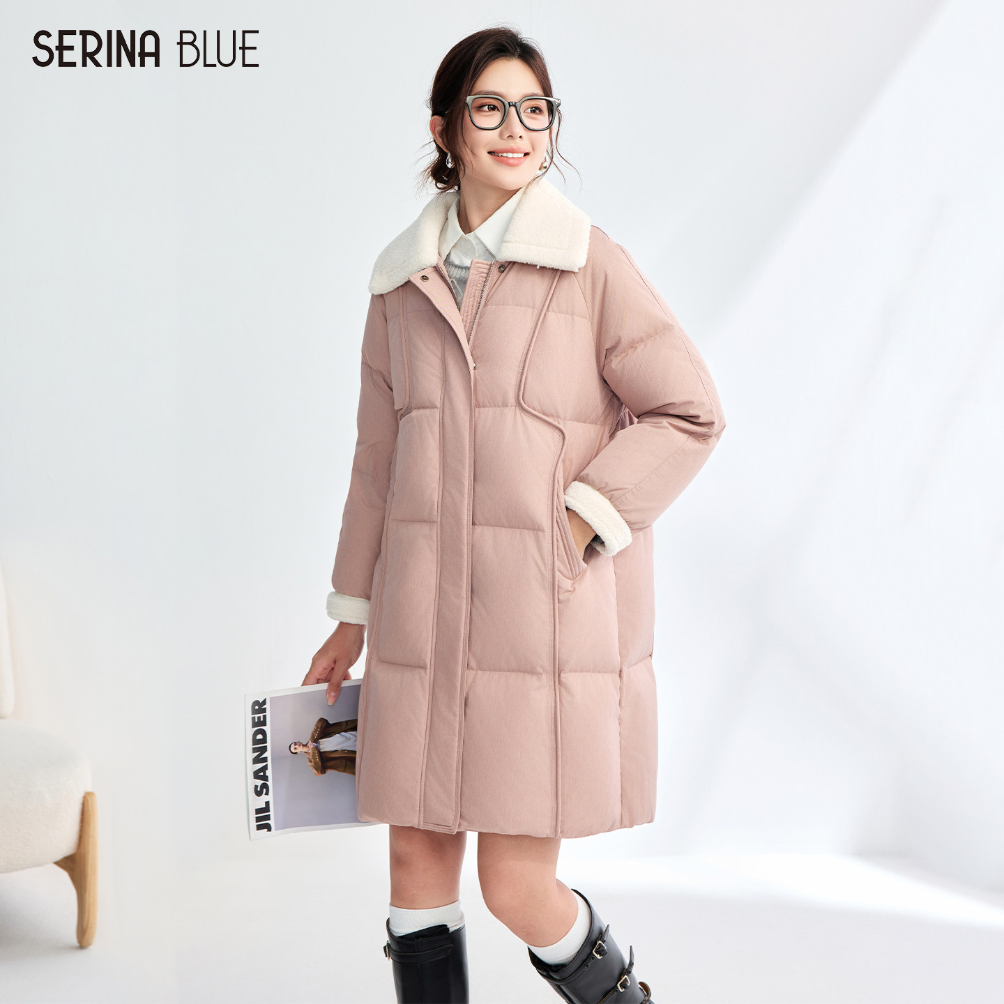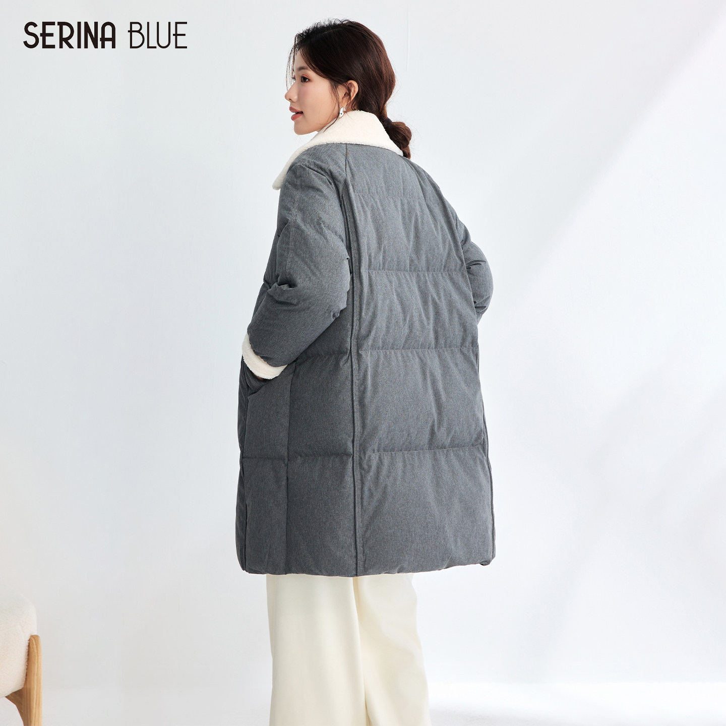 SeRinaBlue2025冬季新款高级感面包格小个子羽绒服女款中长款外套