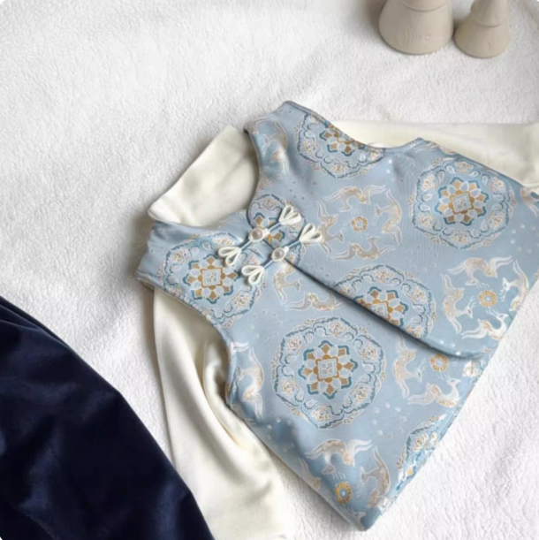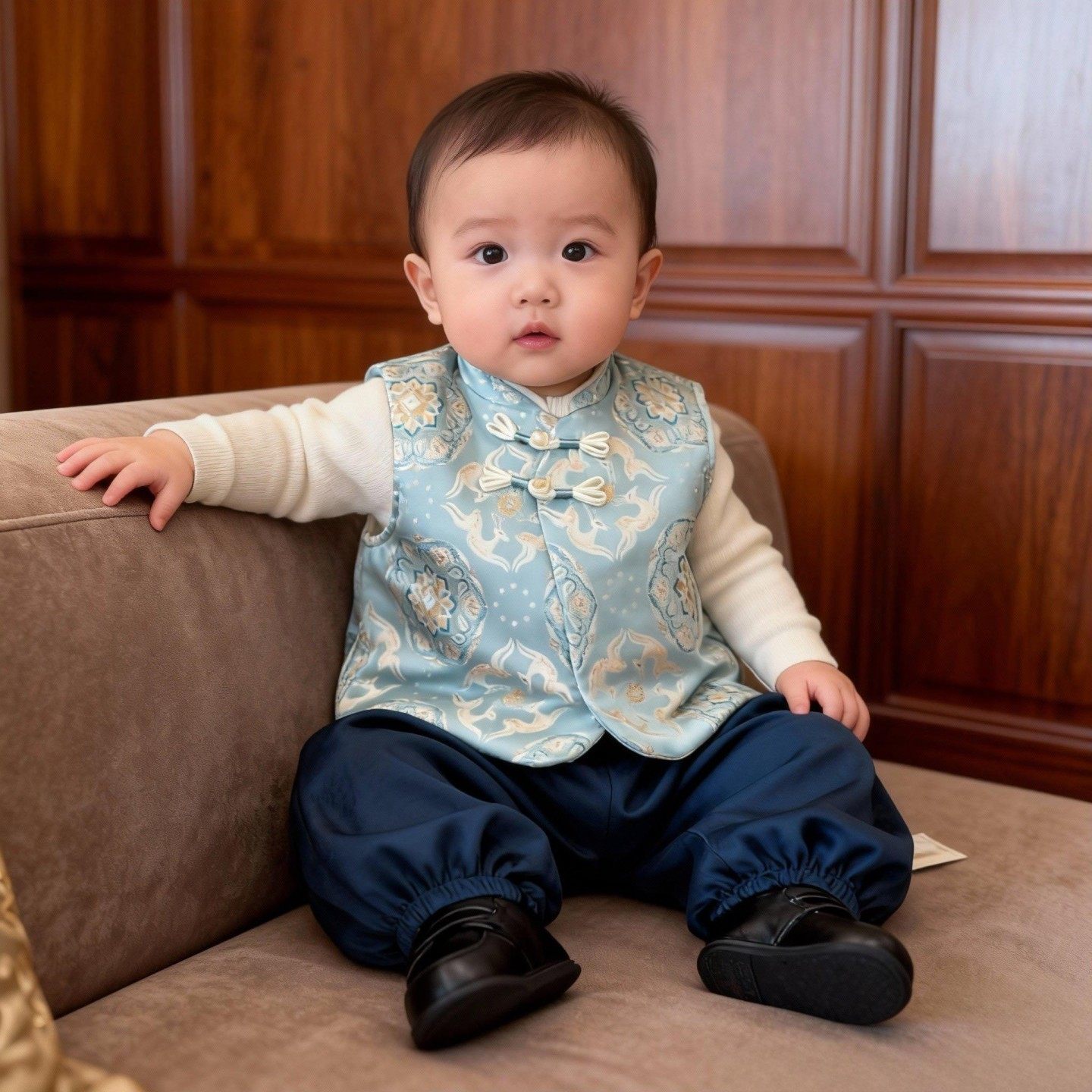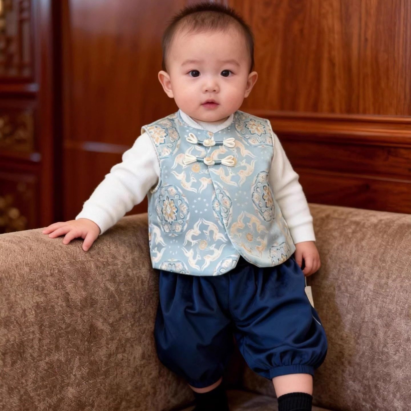 婴儿冬季新中式夹棉马甲背心男宝宝中国风上衣唐装男童新年周岁服