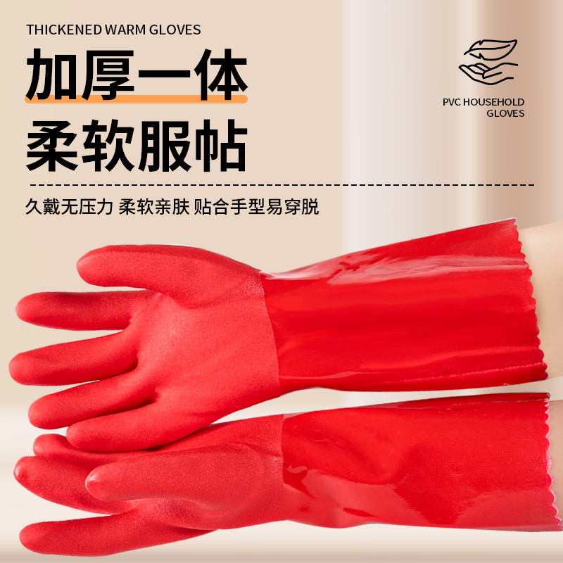 洗碗加绒手套厨房家务保暖加厚胶皮耐用橡胶洗衣加长卫生清洁冬季