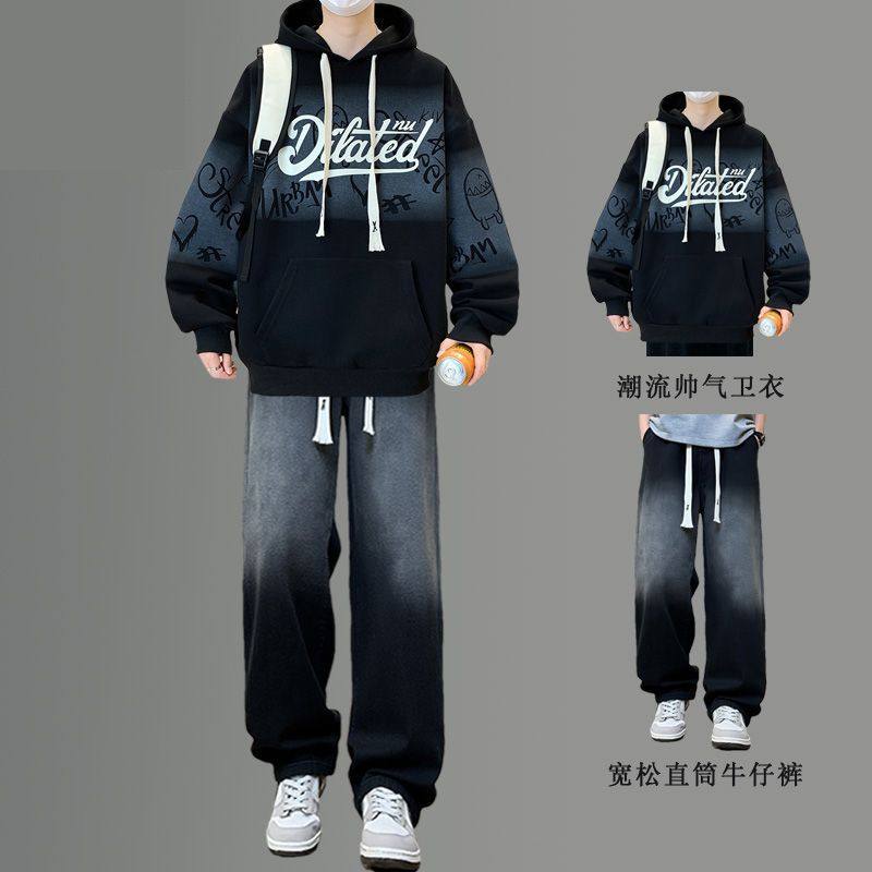 2025新款春秋季连帽卫衣男士时髦外套青少年初中学生潮流帅气套装