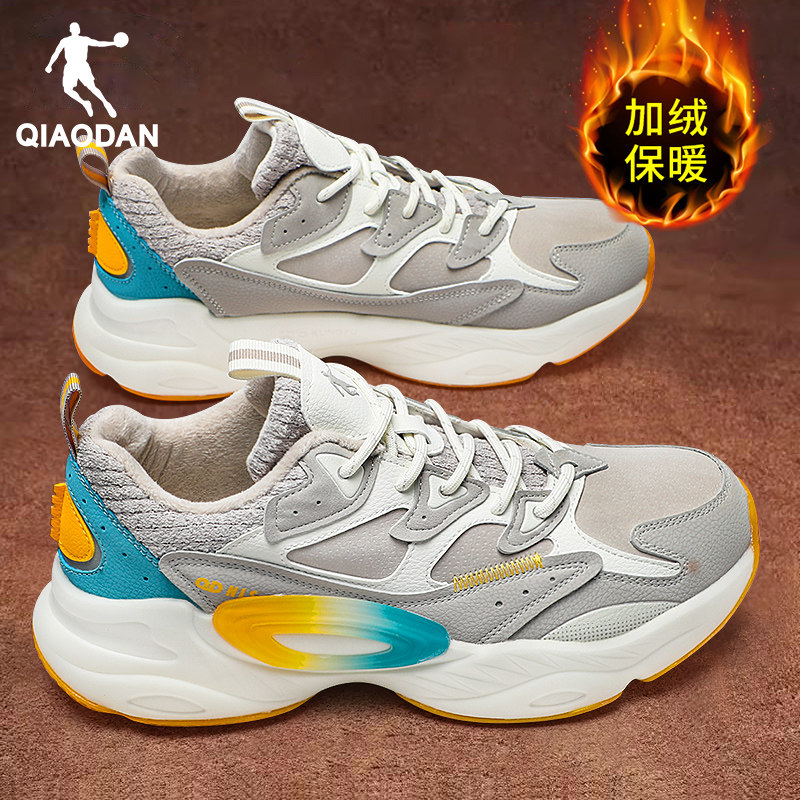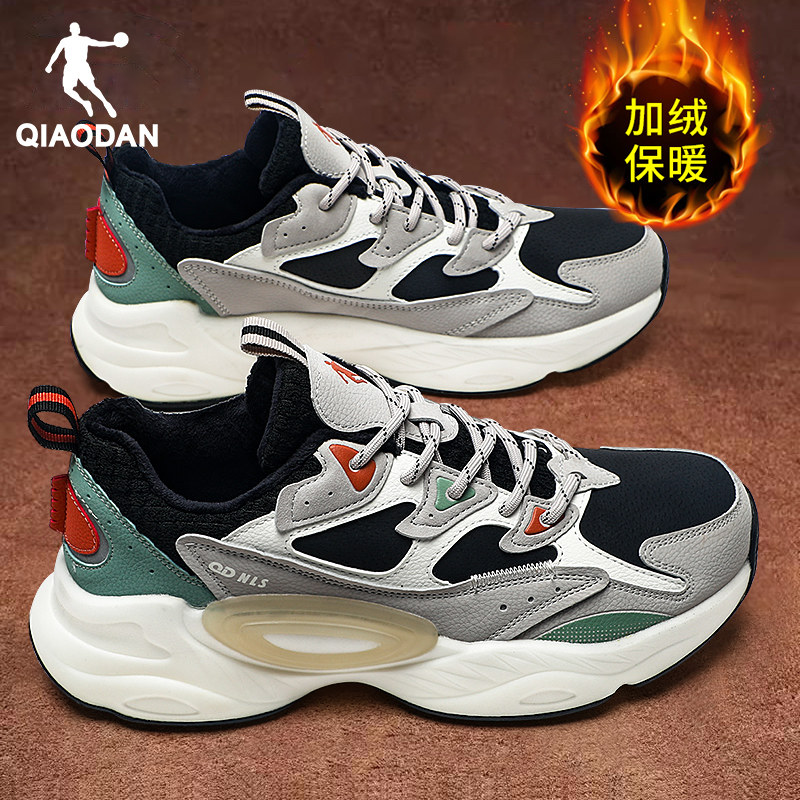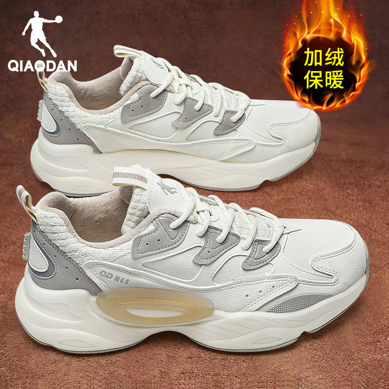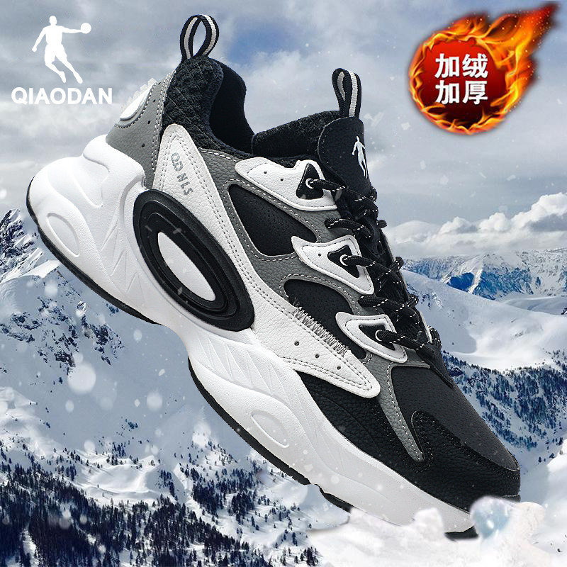 乔丹男鞋跑步鞋皮面防水运动休闲鞋子冬季新款加绒加厚保暖二棉鞋