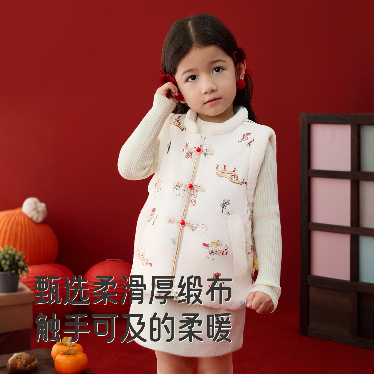 英氏儿童马甲秋冬夹棉保暖新年服喜庆新中式男童女童2025新款上衣