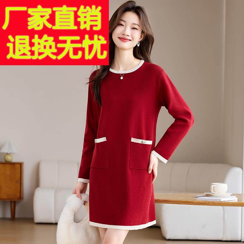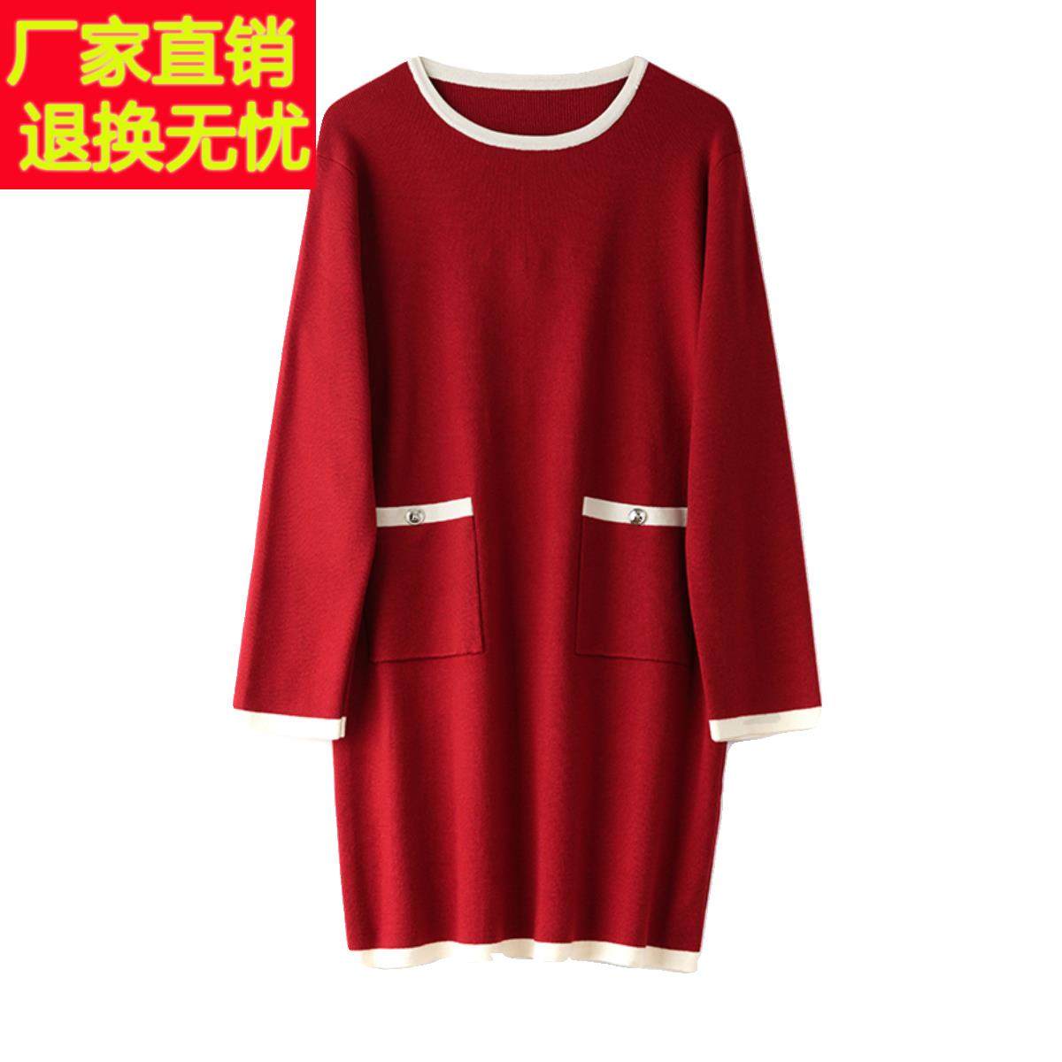 加厚红色毛衣裙女秋冬季新款小个子显瘦配大衣针织打底内搭连衣裙