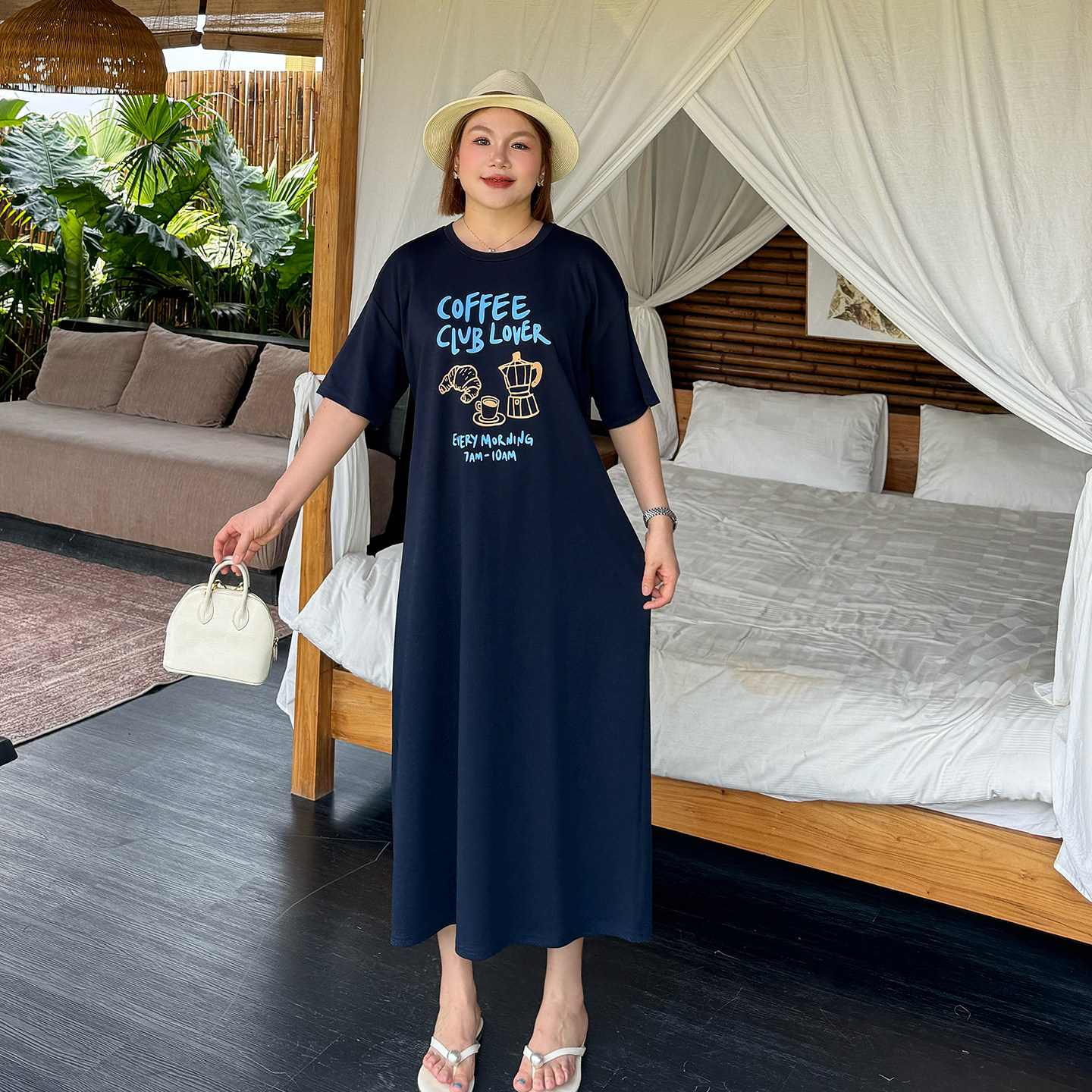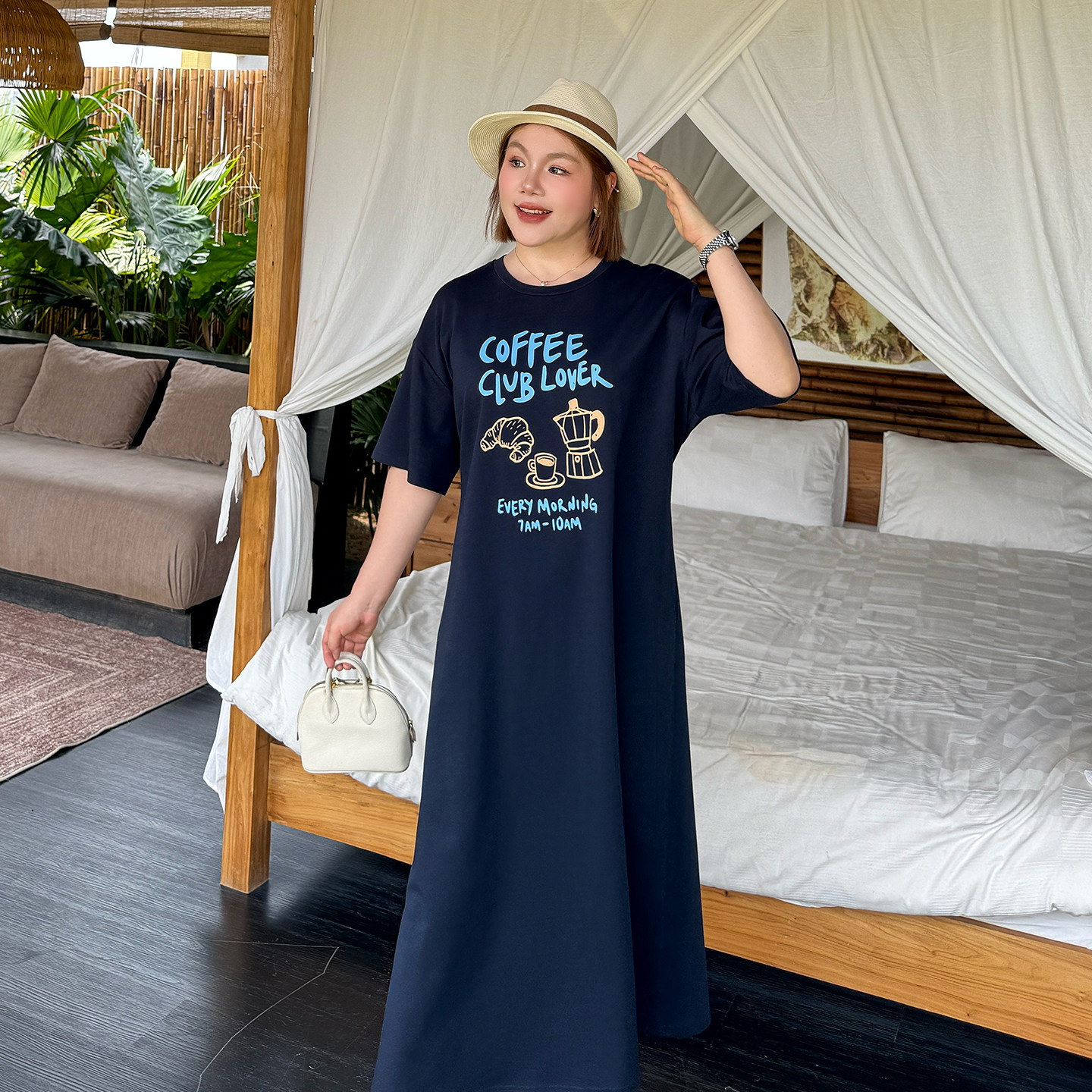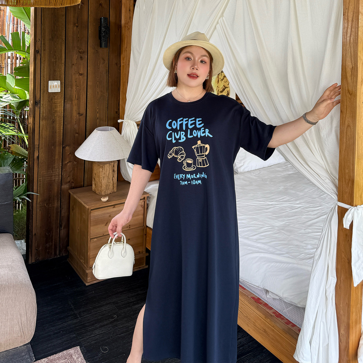 特大码印花T恤裙凉感宽松长款200斤夏季胖mm显瘦开叉减龄连衣裙