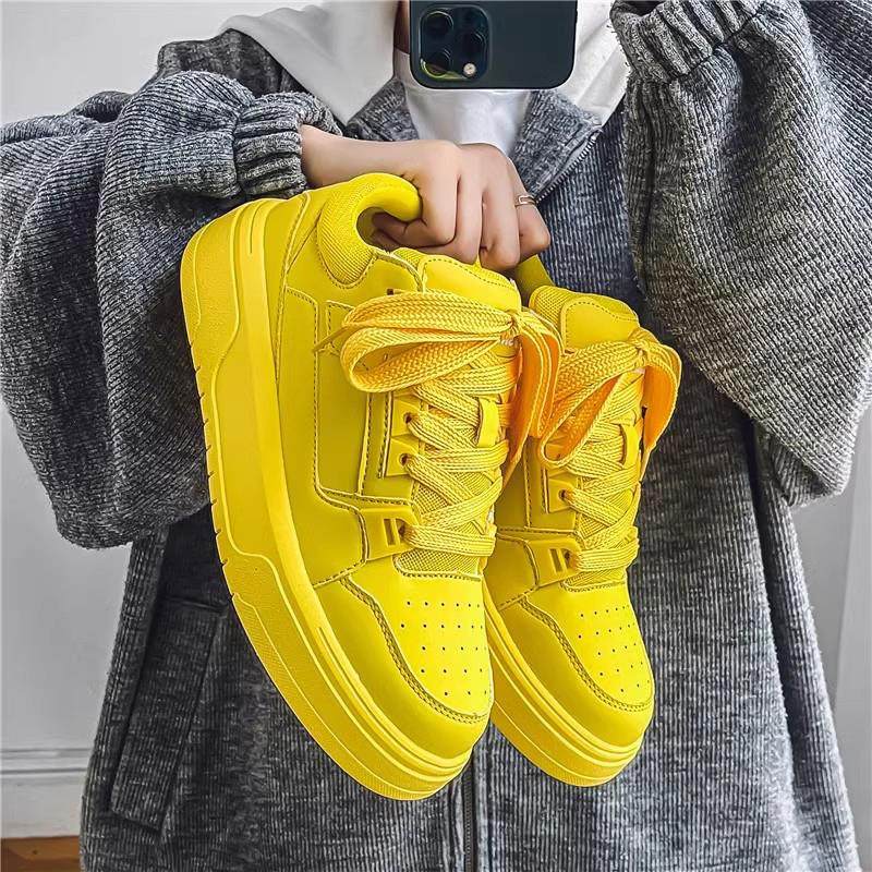 男鞋春秋季潮牌高级感百搭休闲黄色板鞋男生运动厚底增高面包潮鞋