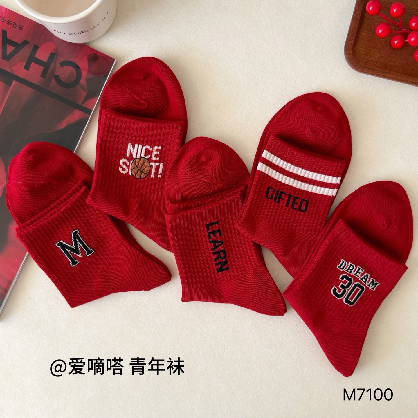 爱嘀嗒男女新年袜子舒适亲肤中长筒红色本命年袜子青少年学生袜