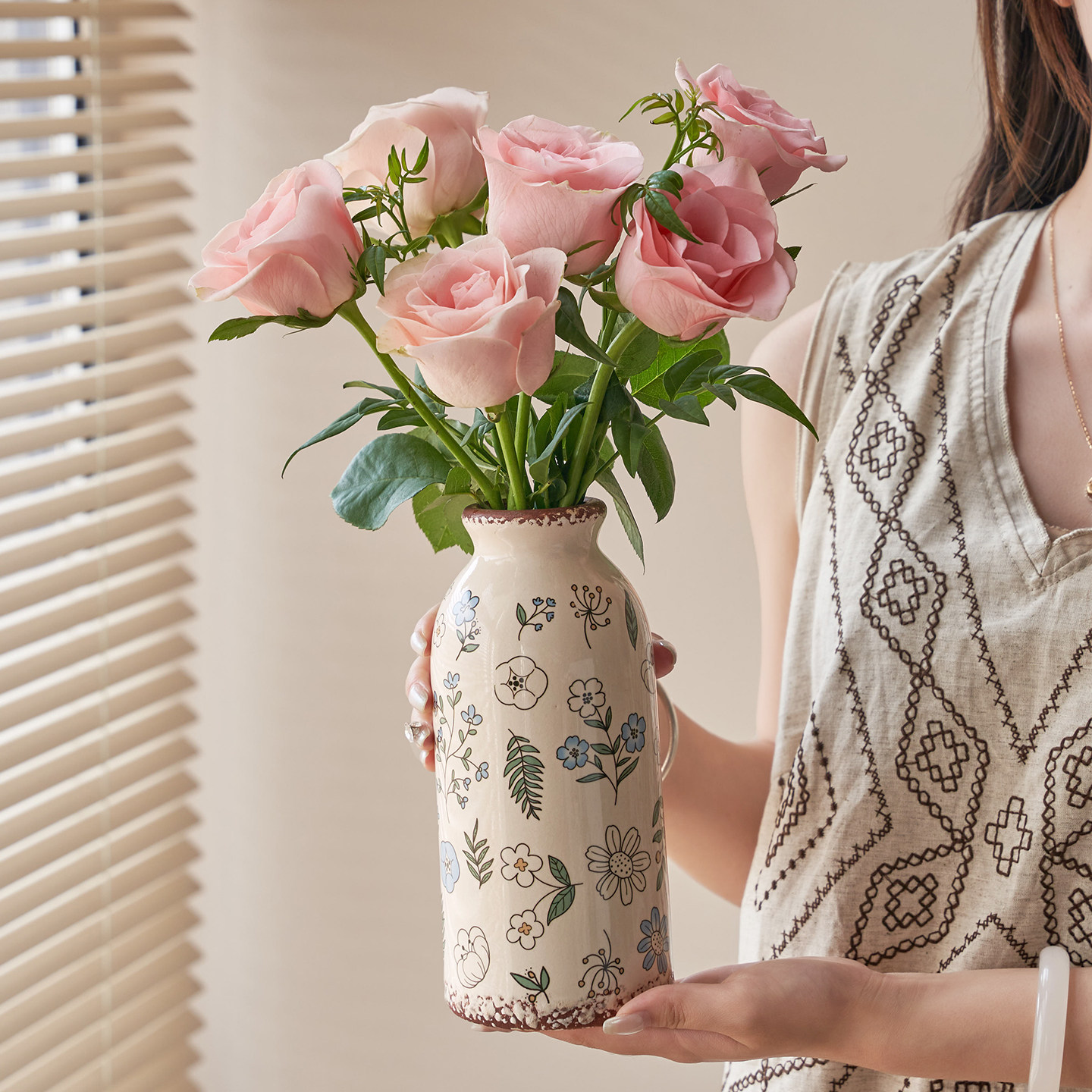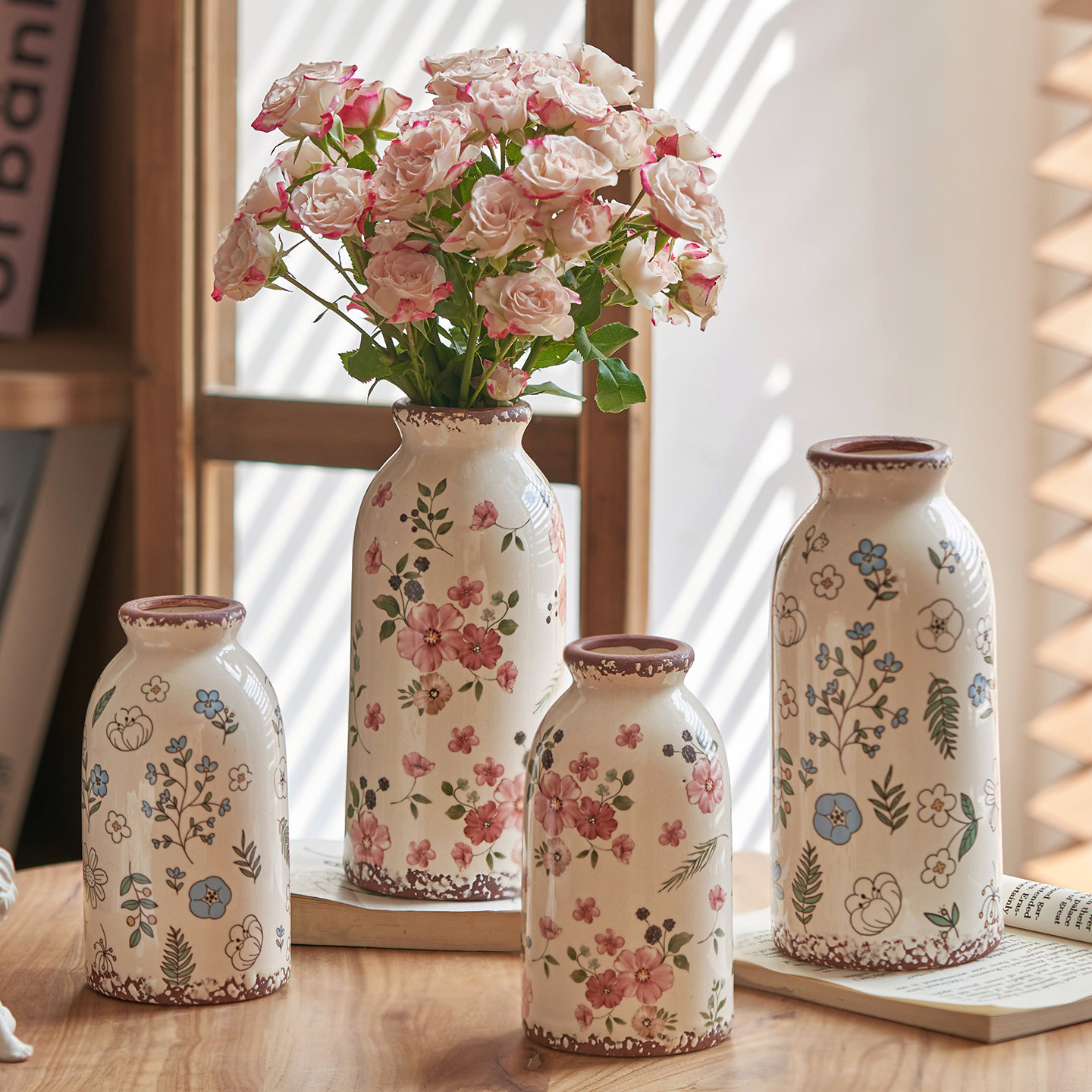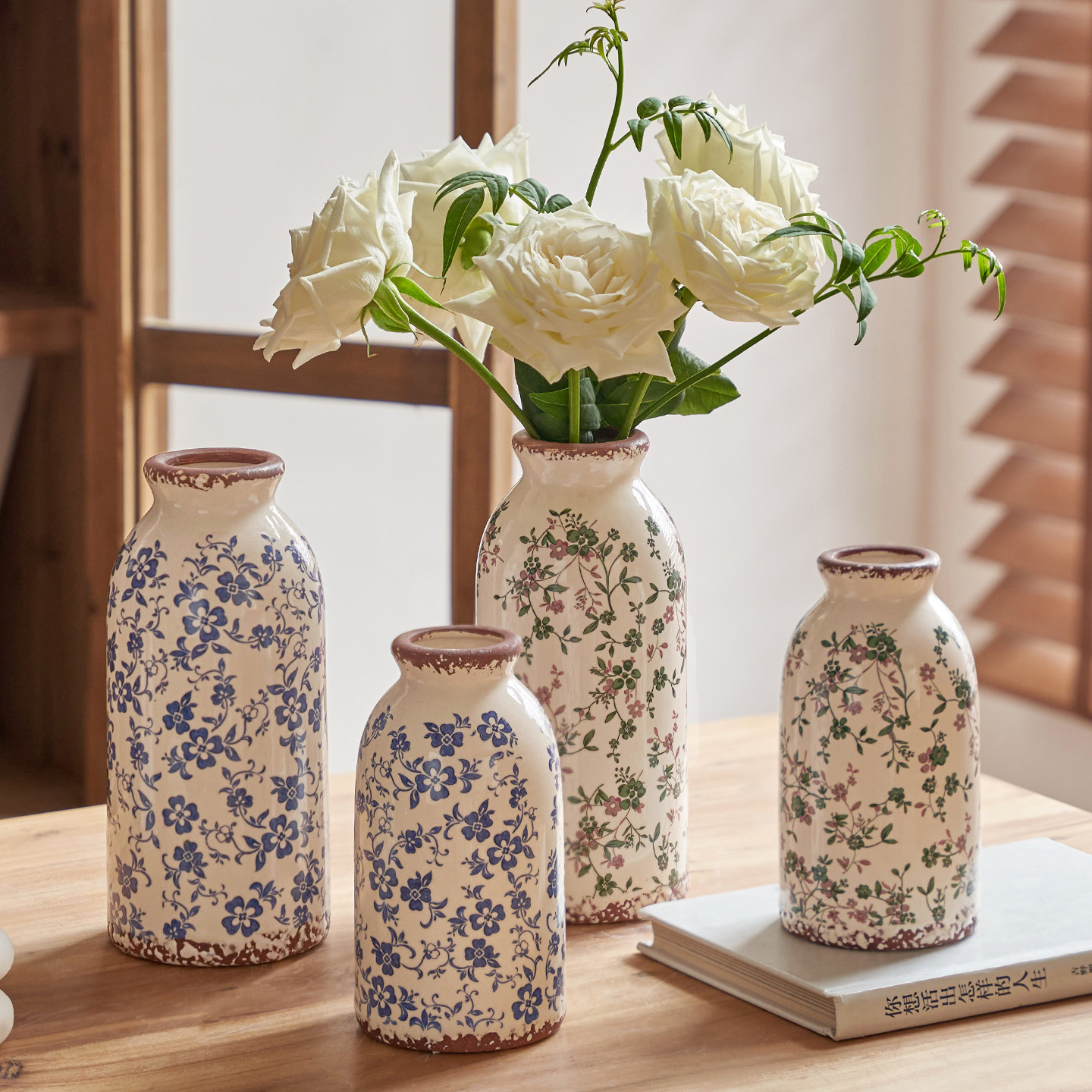 复古田园风陶瓷小花瓶摆件客厅餐桌插花干花小众高级感创意装饰品