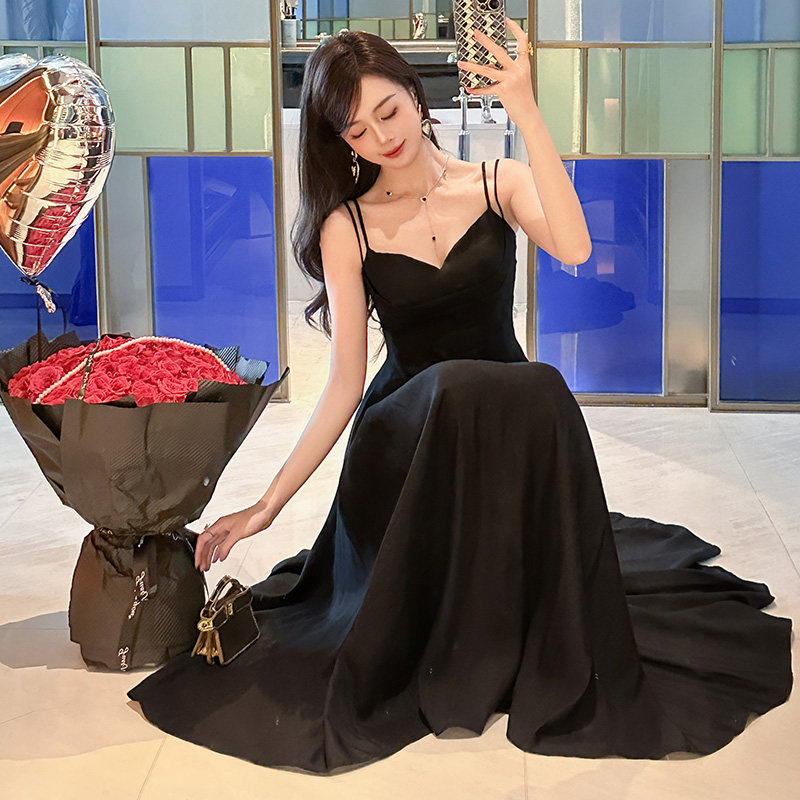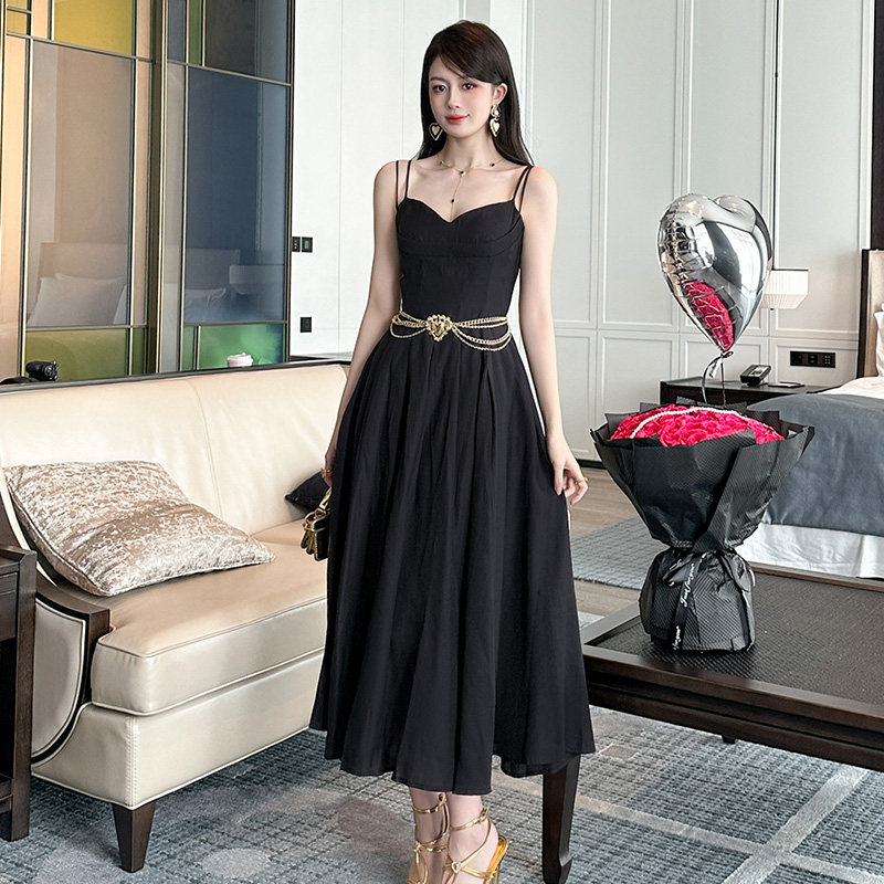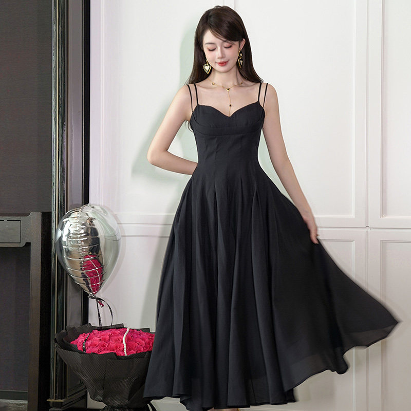 新款连衣裙女夏高级感法式轻奢气质名媛收腰显瘦黑色性感吊带长裙