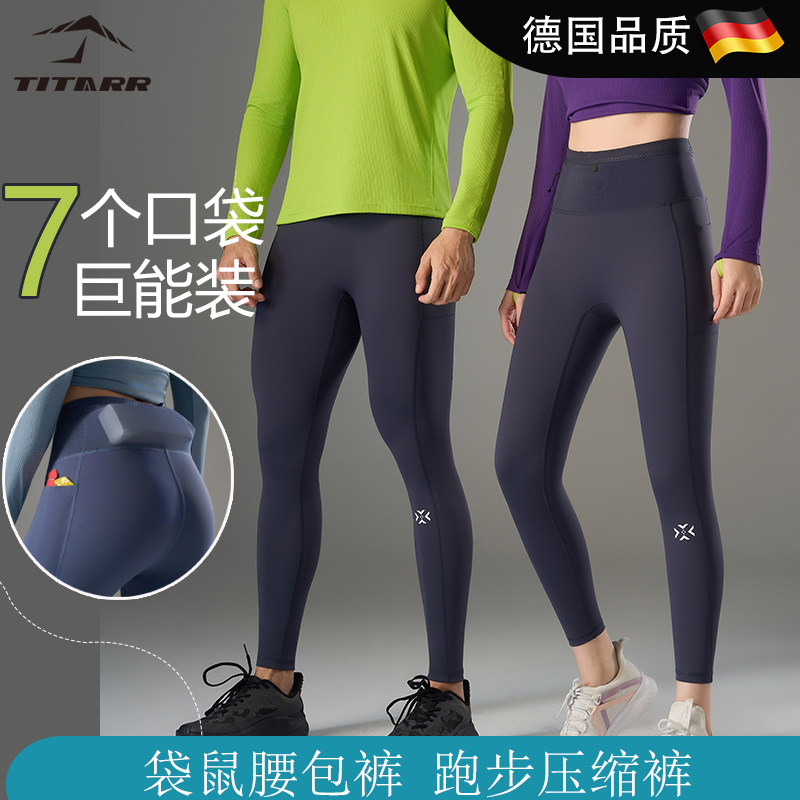 TiTA导汗裤专业马拉松压缩裤女袋鼠腰包健身裤训练运动裤跑步裤男
