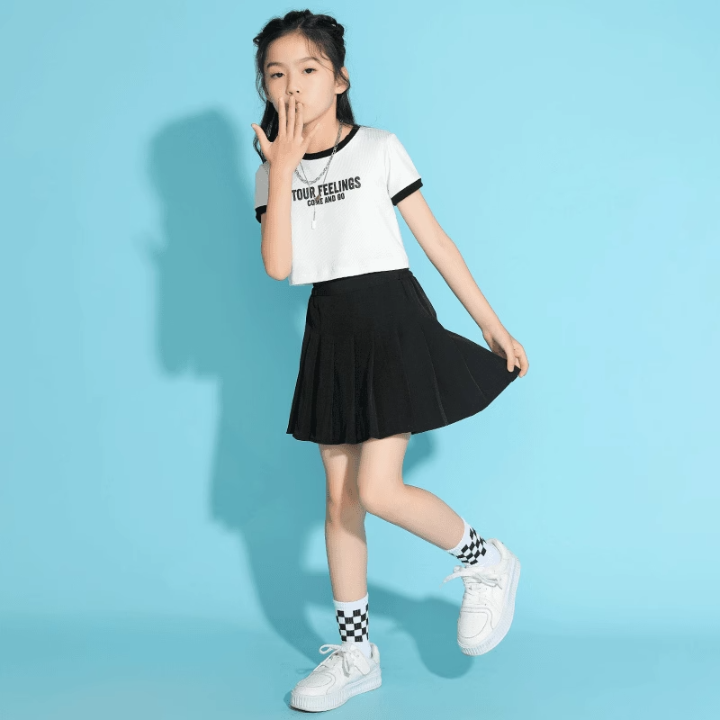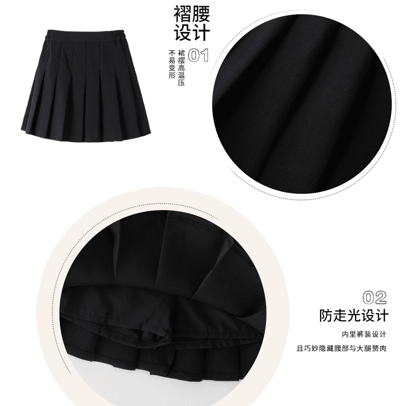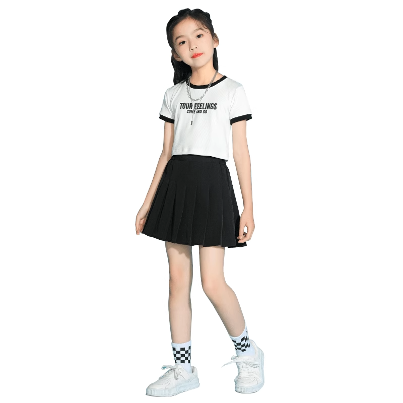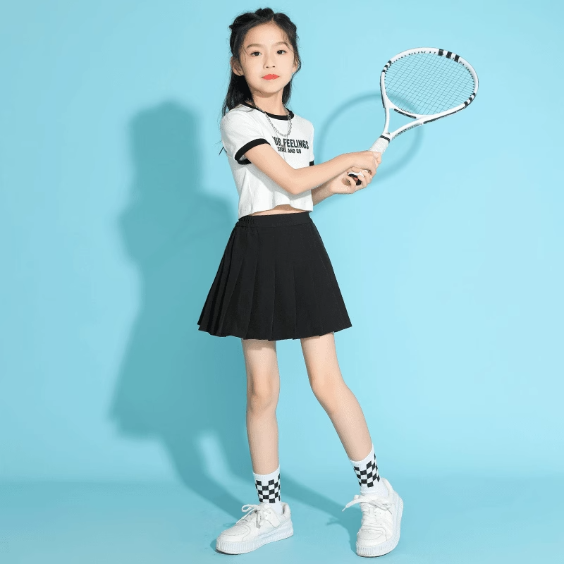 女童网球裙夏季2025新款中大儿童百褶裙夏装女孩黑色透气运动短裙