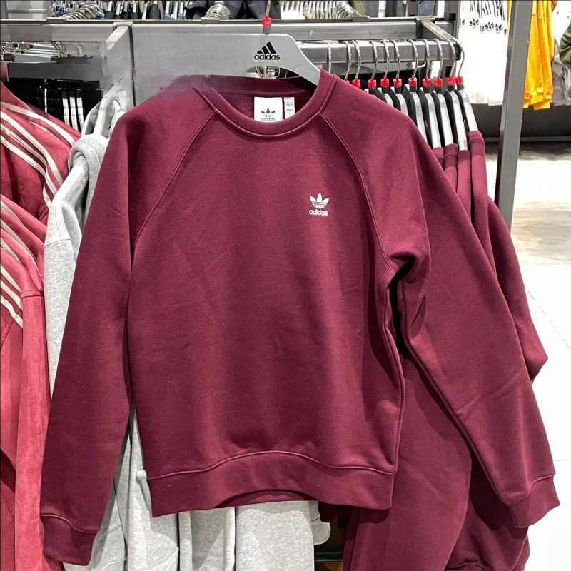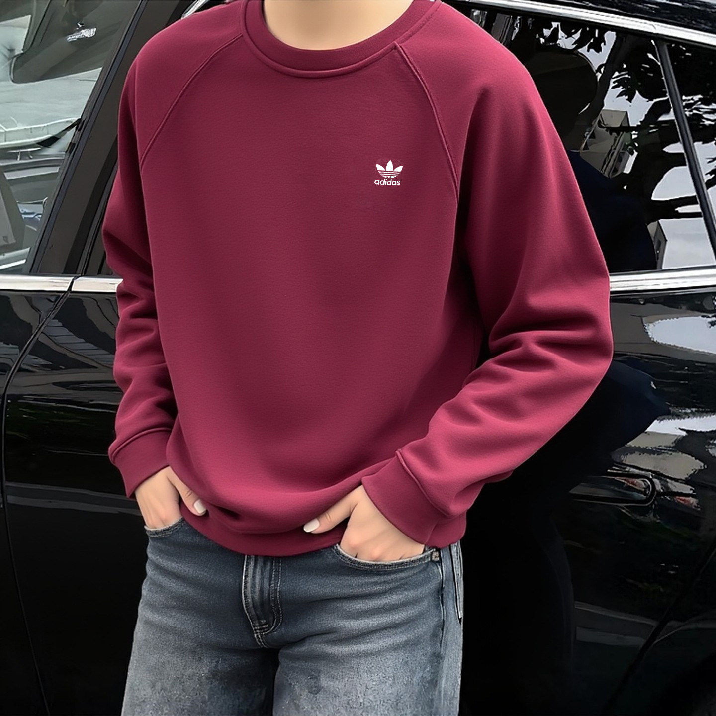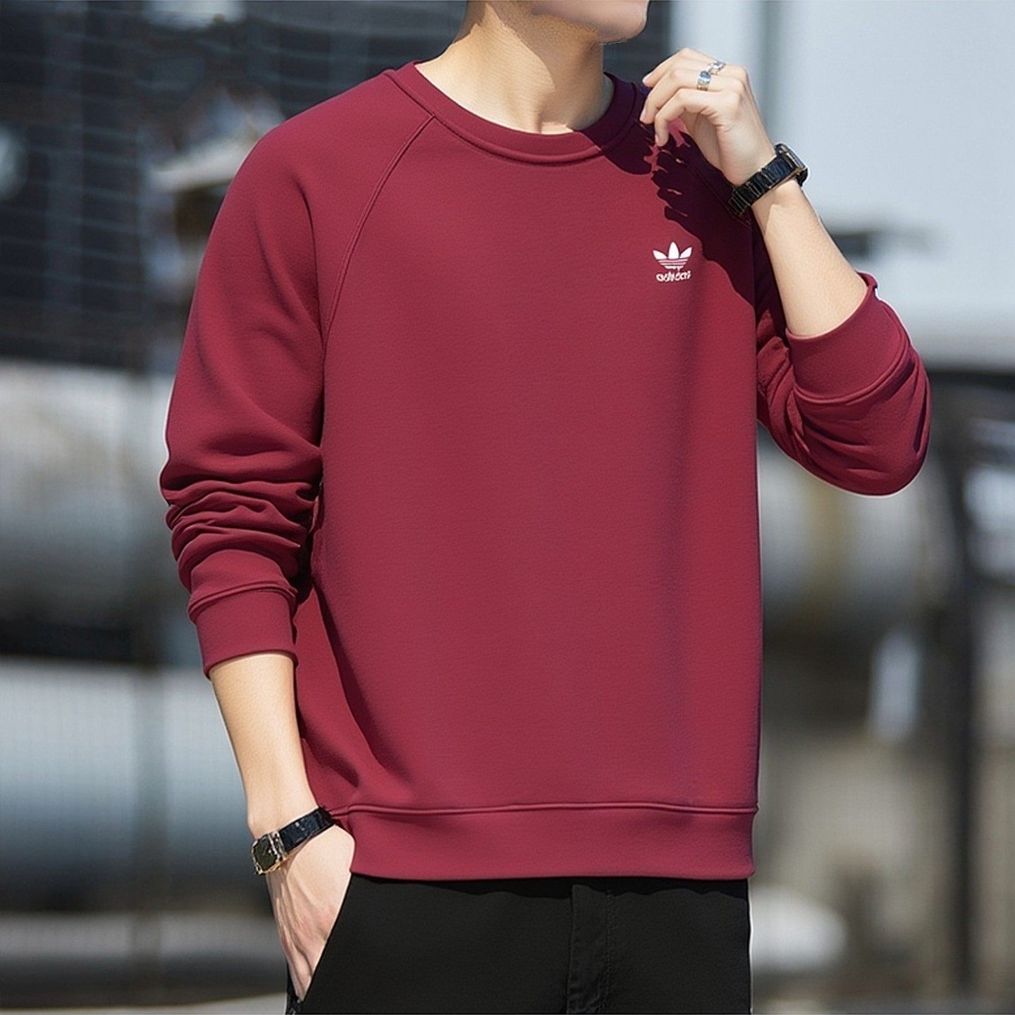阿迪达斯卫衣男士春季新款棉质透气上衣红色套头衫宽松休闲长袖男