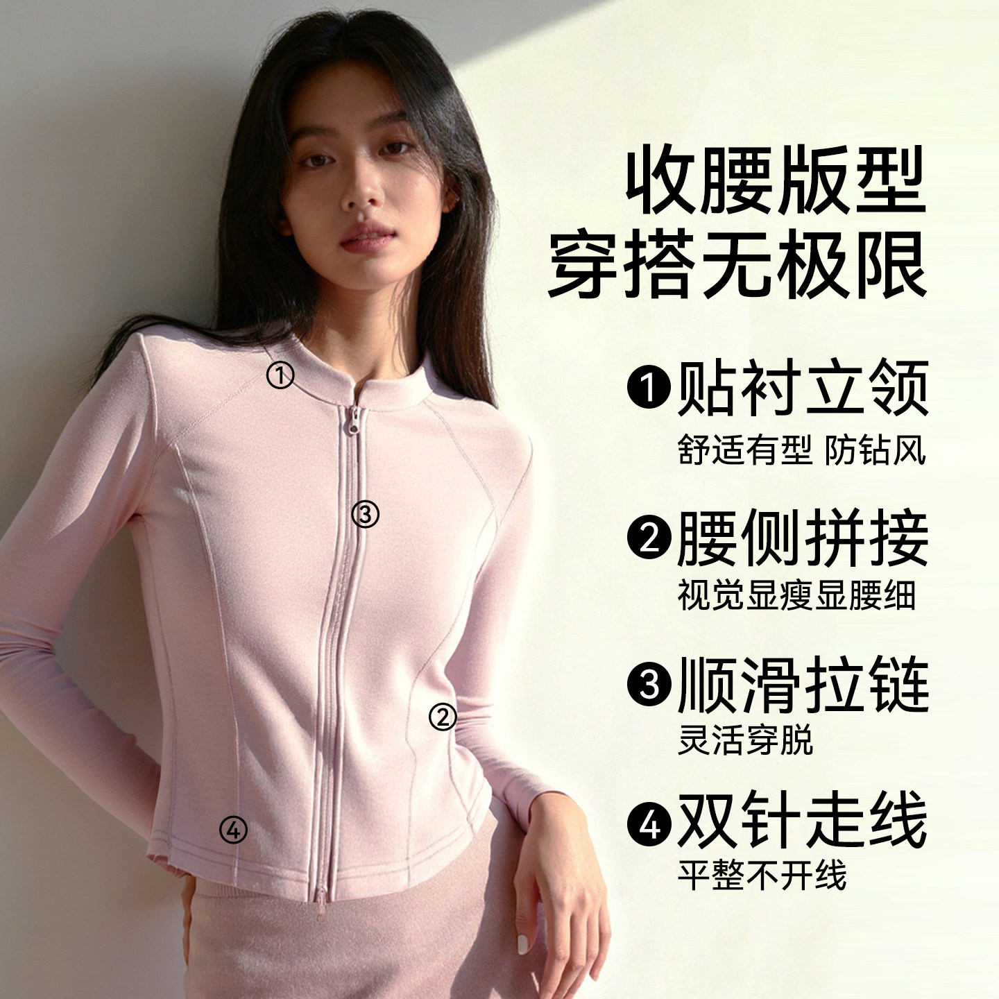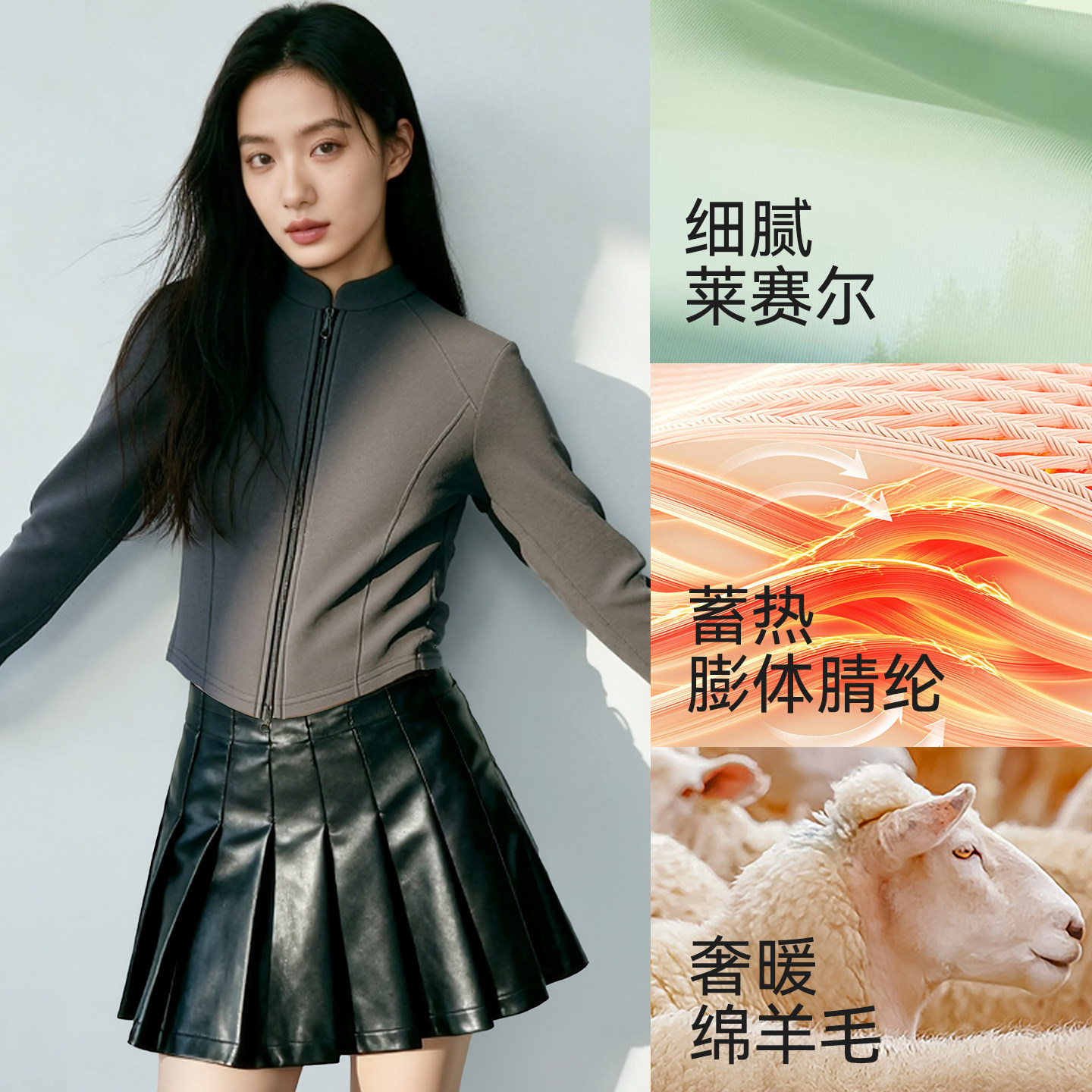 加绒卫衣女款德绒发热立领保暖上衣冬季修身短款无帽拉链开衫外套