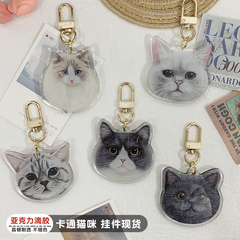 双面滴胶亚克力猫咪挂件现货卡通可爱宠物钥匙扣链diy照片定制