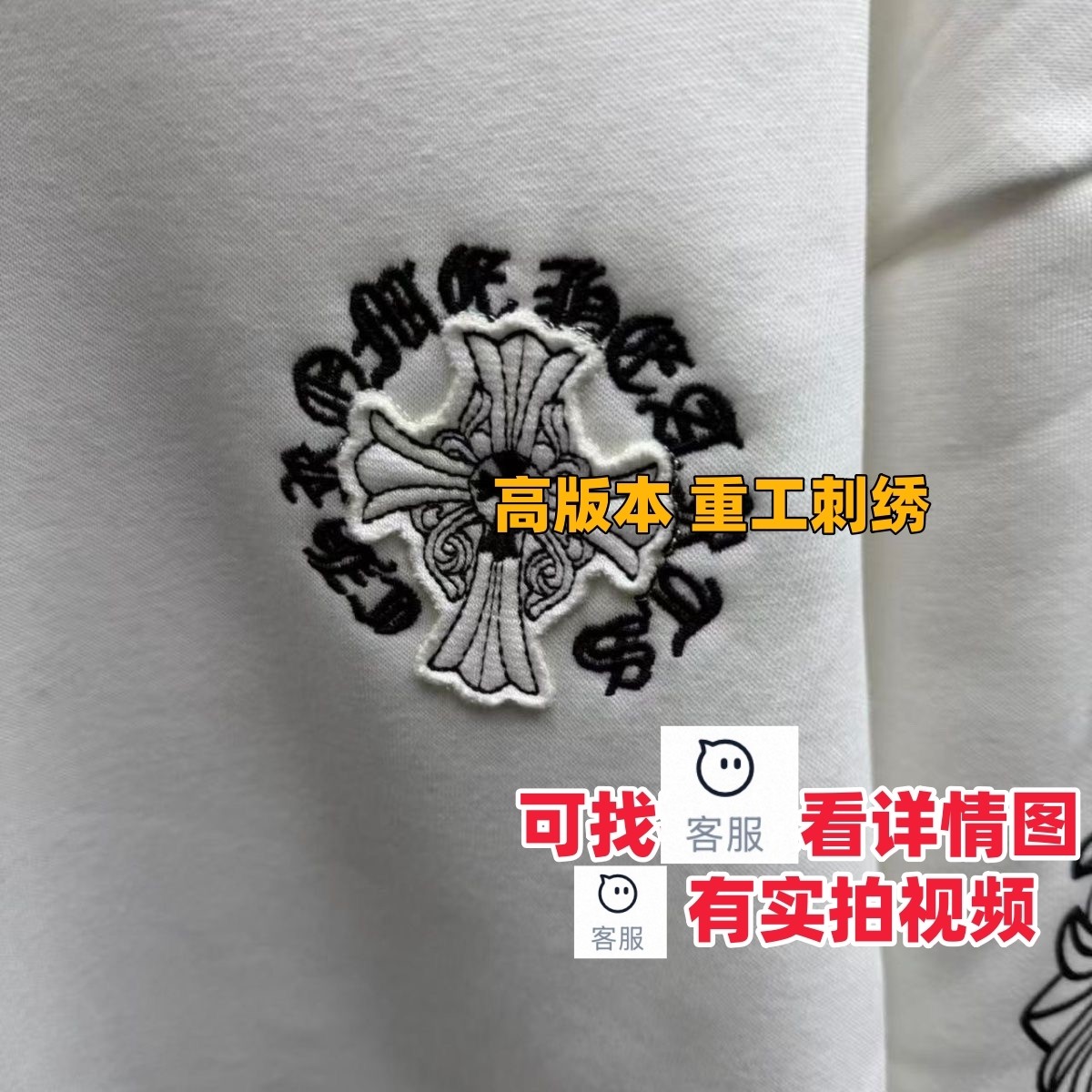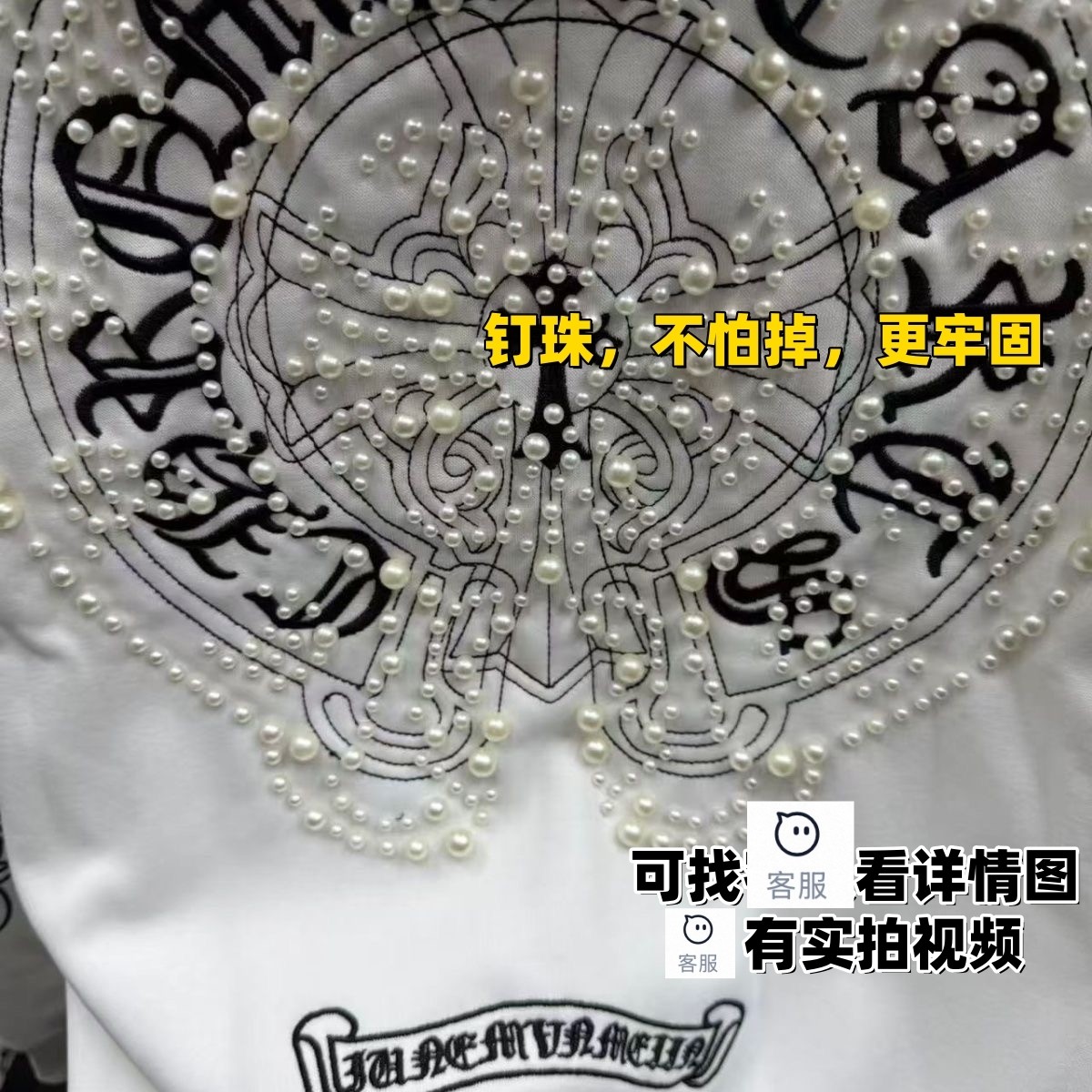 爆款高版本新款克罗马蹄珍珠刺绣CH十字架梵文连帽宽松卫衣男女款