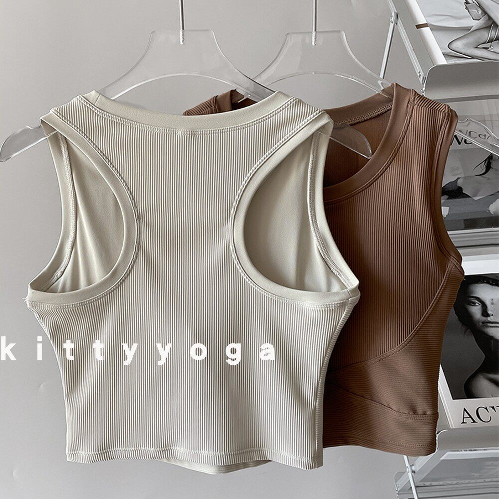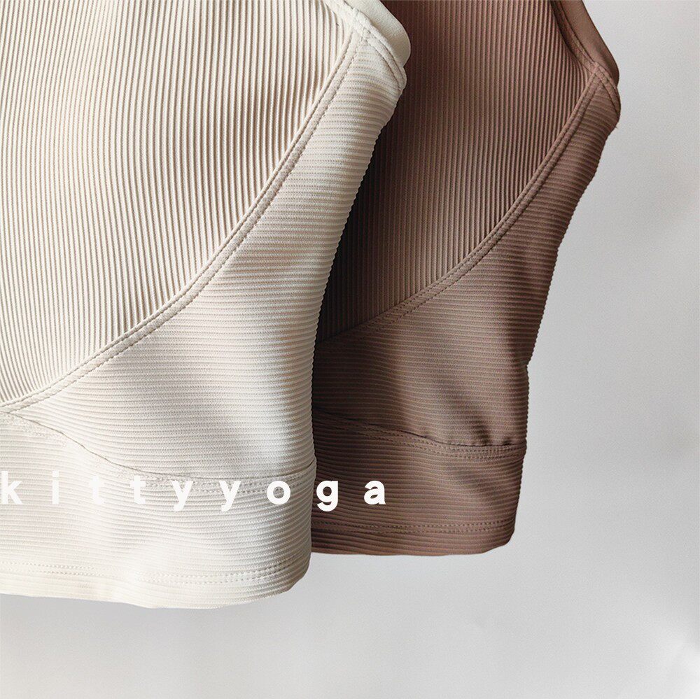 美背运动内衣女中高强度固定罩杯罗纹无钢圈小胸聚拢外穿瑜伽背心