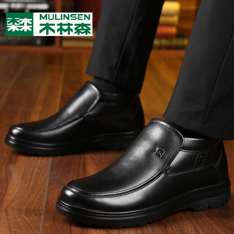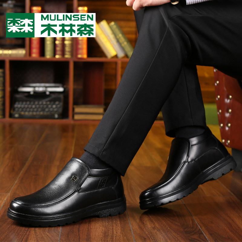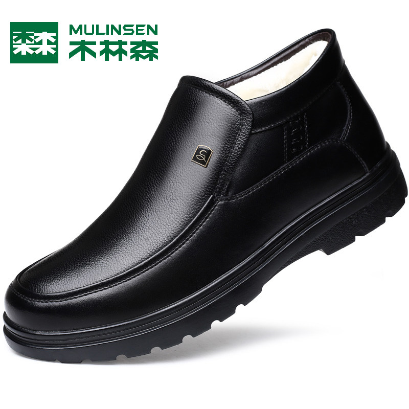 木林森男鞋2025冬季保暖高帮棉鞋男加绒羊毛休闲皮鞋真皮爸爸鞋子