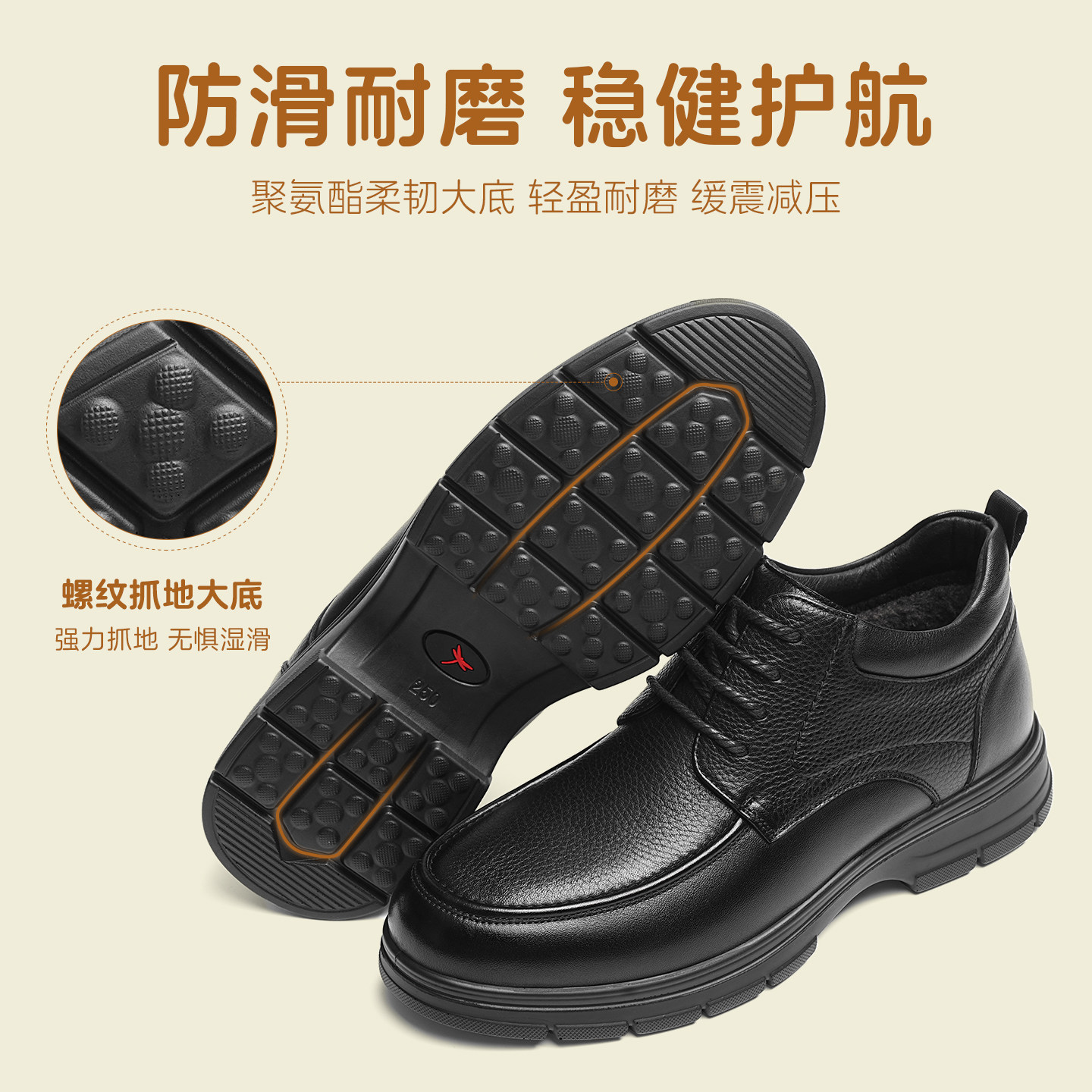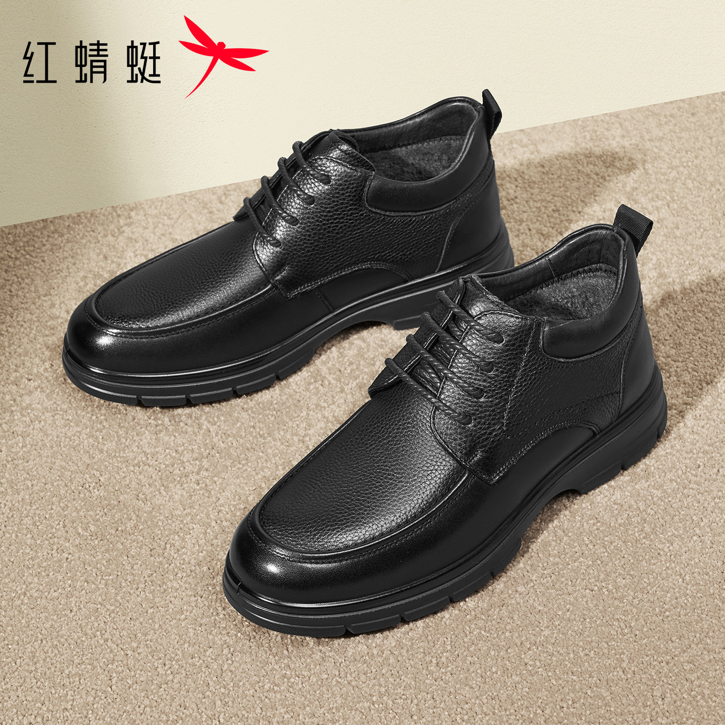 红蜻蜓男士棉鞋冬季新款男鞋真皮加绒保暖皮鞋中老年高帮爸爸鞋子