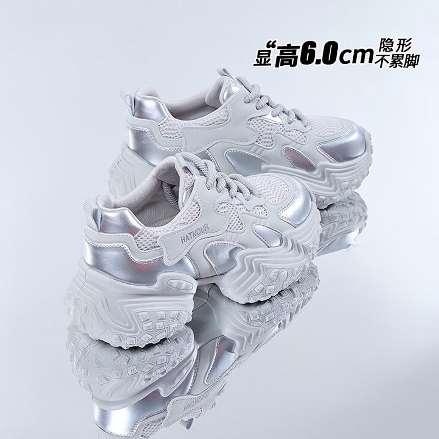 老爹鞋女款2025新款增高轻便显脚小厚底时尚百搭踩屎感运动休闲鞋