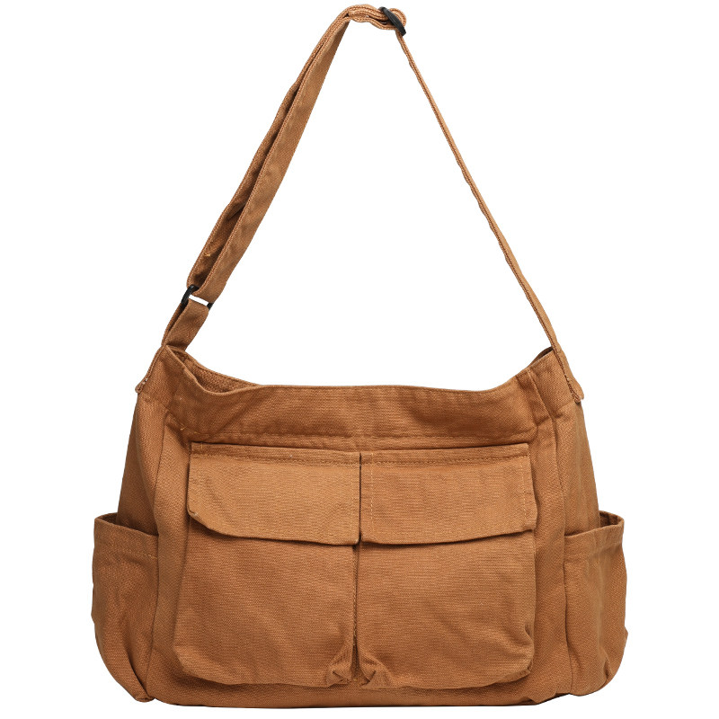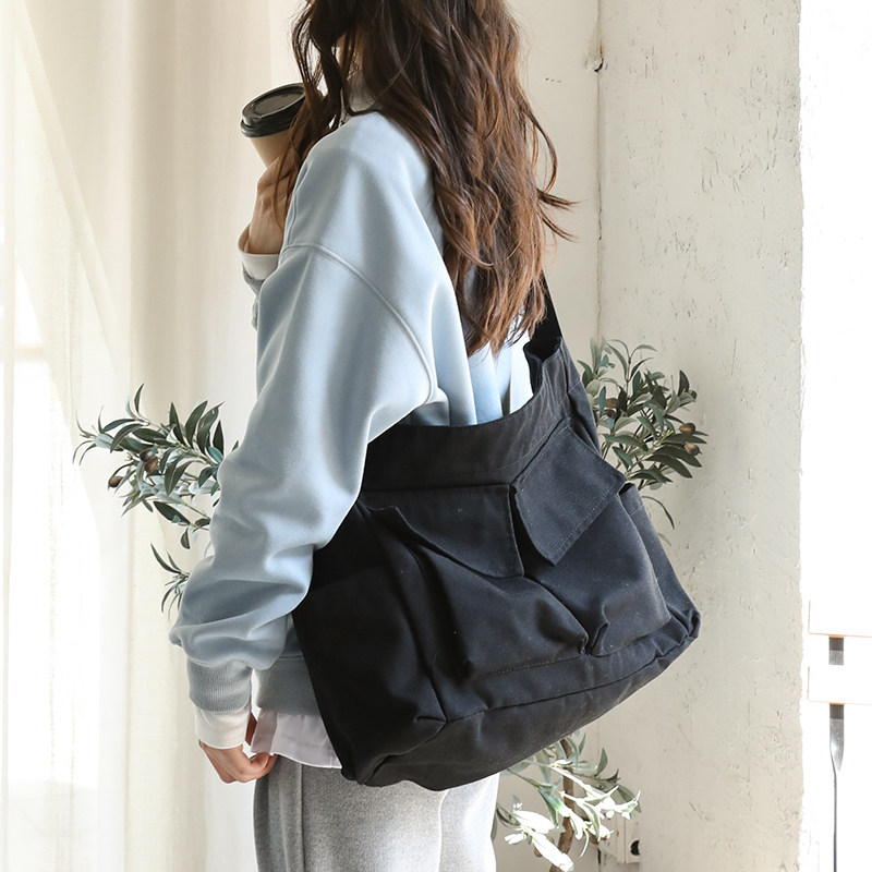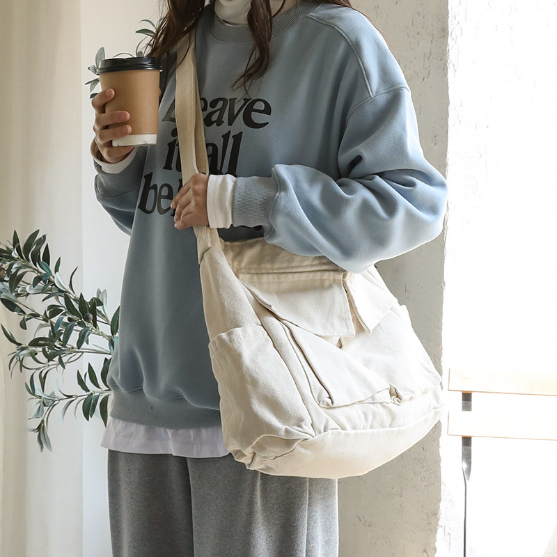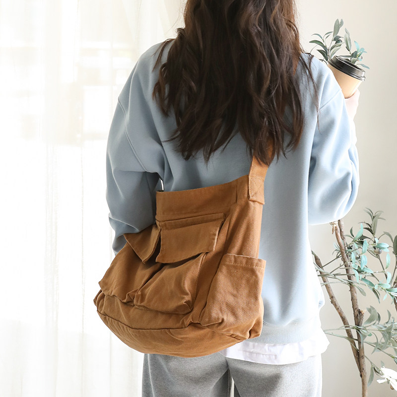 韩系文艺水洗帆布邮差包男女款大容量单肩斜挎包慵懒风学生上课包
