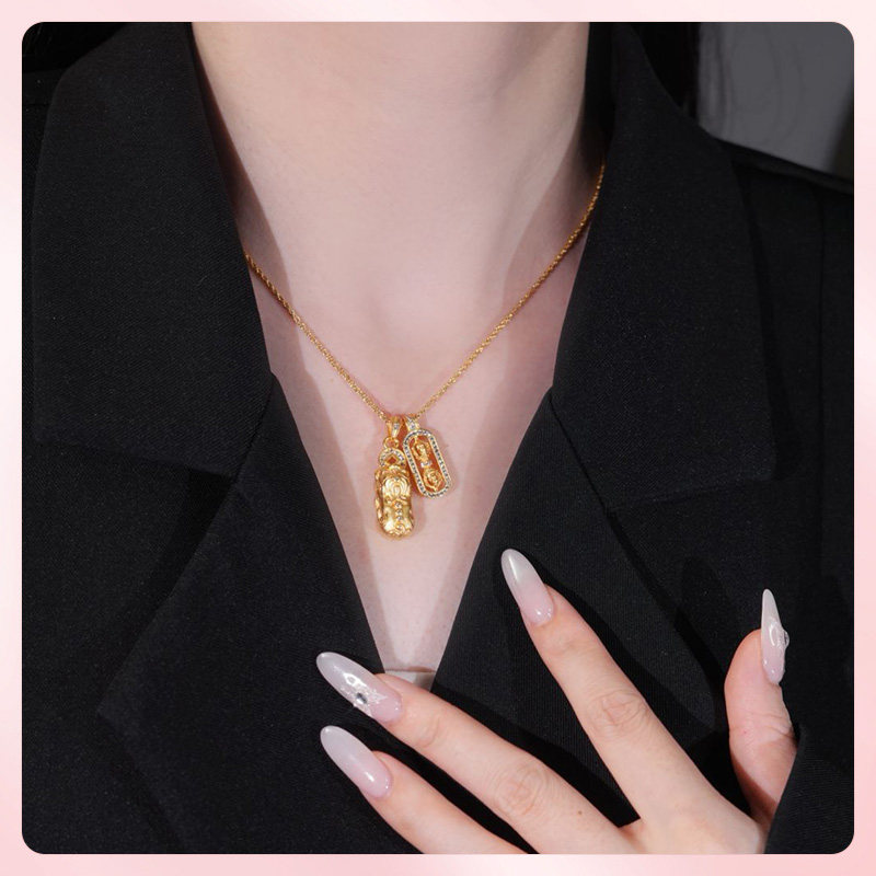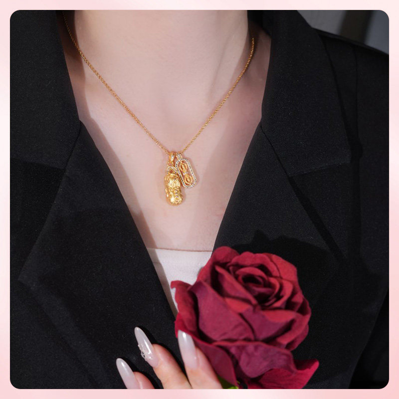 右手等待神话项链女款2025新款黄金色吊轻奢锁骨毛衣链配饰品颈链