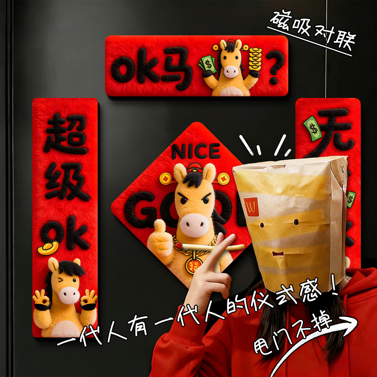 ok马年磁吸对联2026新款年轻人创意搞笑春联春节过年门贴新年装饰