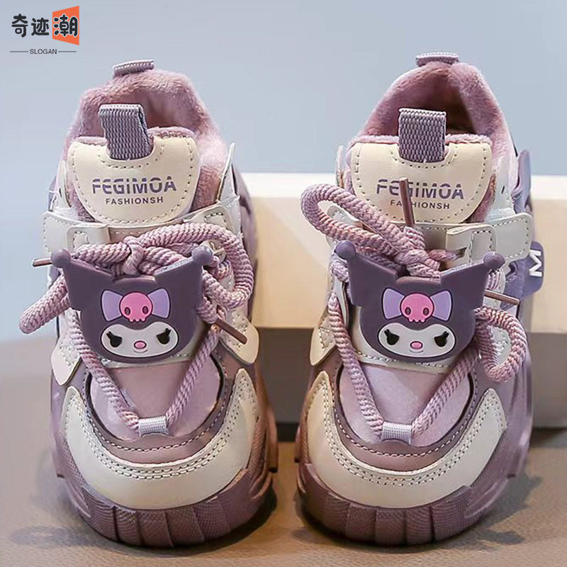 库洛米女童鞋加绒冬季棉鞋2026新款儿童公主运动鞋女孩大棉老爹鞋