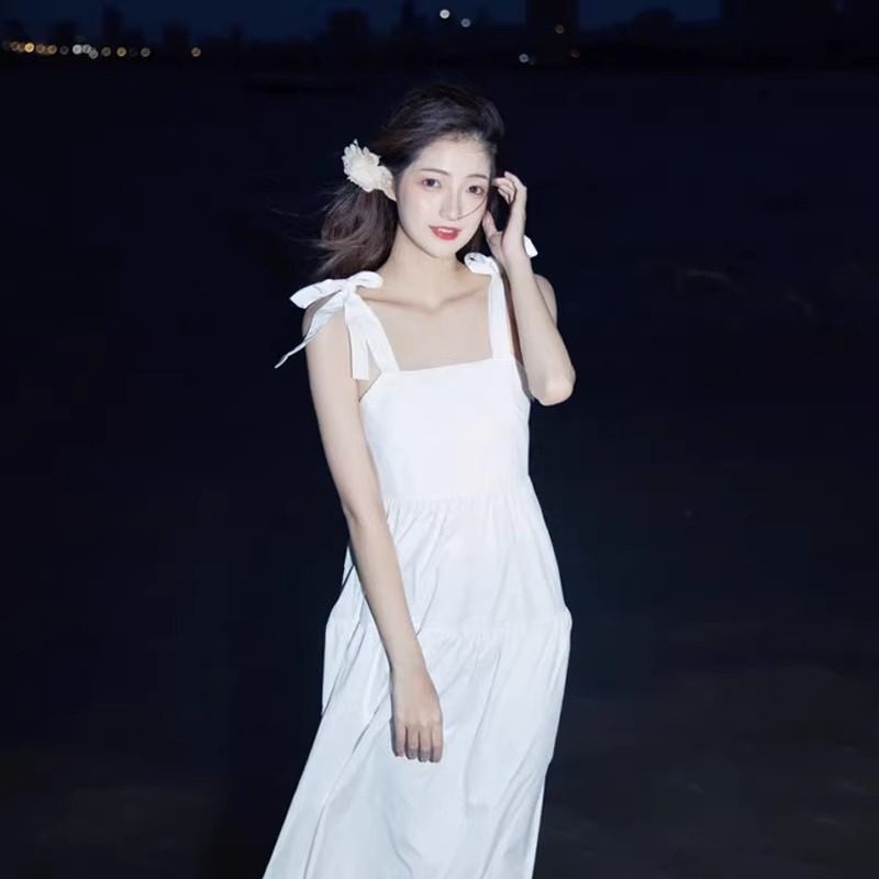 法式小众甜美白色吊带连衣裙女夏小个子设计感海边度假初恋沙滩裙