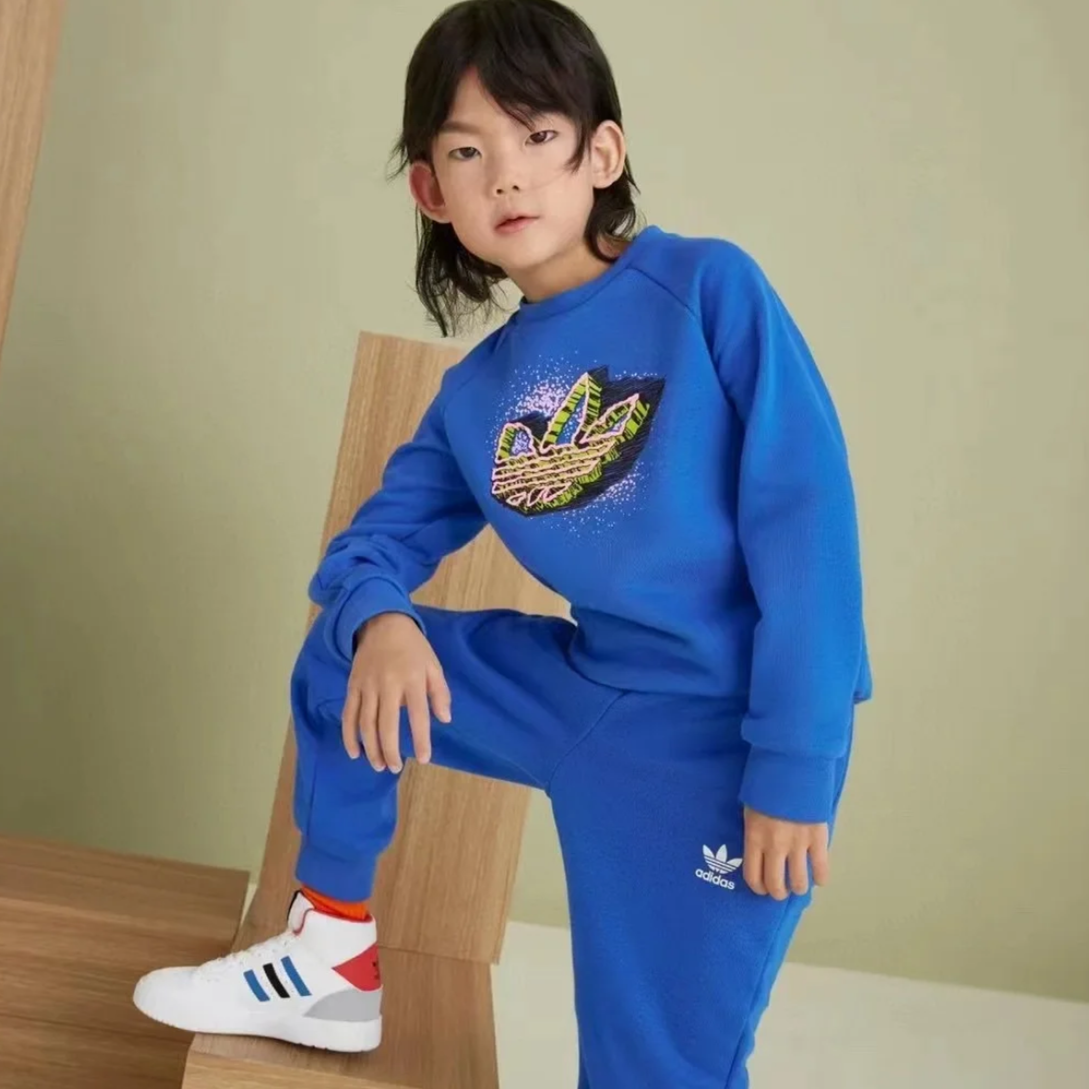 阿迪达斯三叶草儿童小童春秋运动休闲卫衣卫裤长款套装 HL2200
