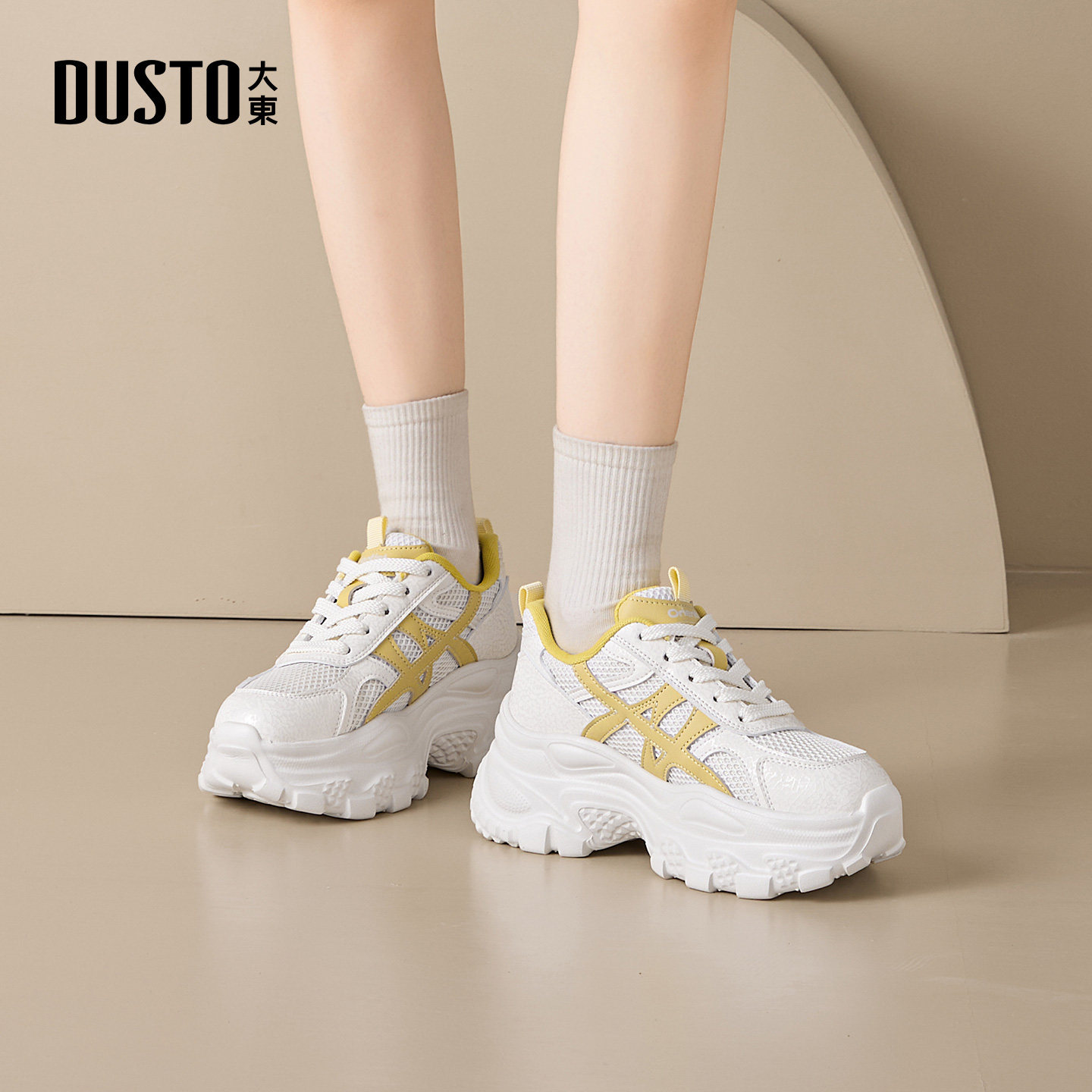 大东官方小个子增高老爹鞋女款2026新款春季厚底运动鞋白色休闲鞋