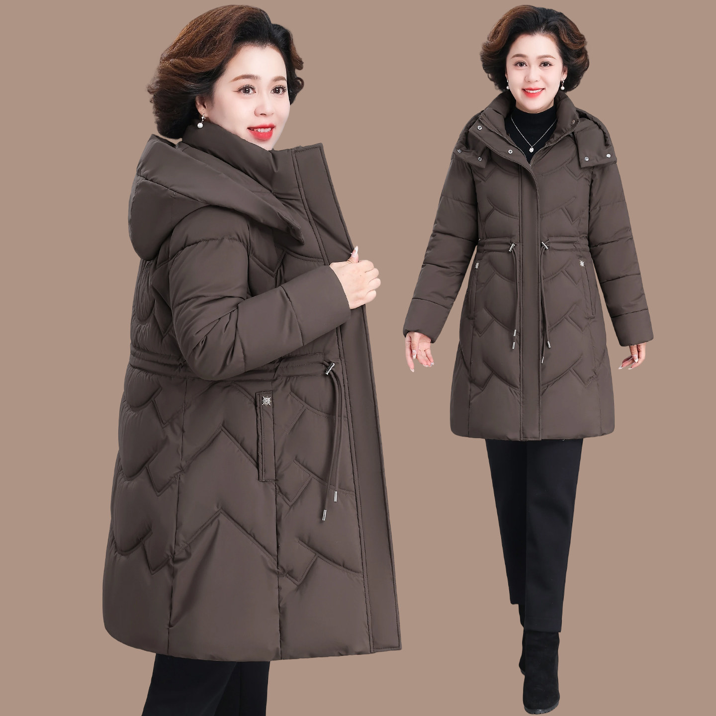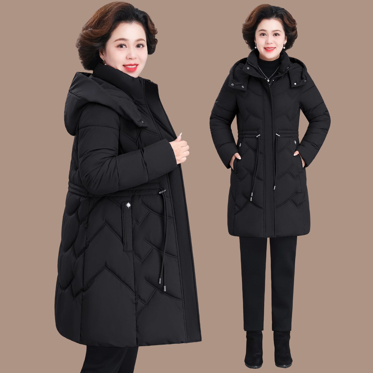棉衣女款冬季2025新款中老年妈妈冬装外套收腰显瘦羽绒棉服中长款