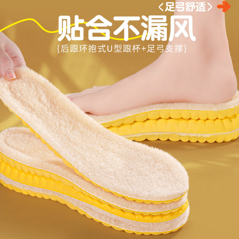 羊毛鞋垫女新款冬加绒加厚足弓支撑软底舒适男士吸汗防臭运动减震