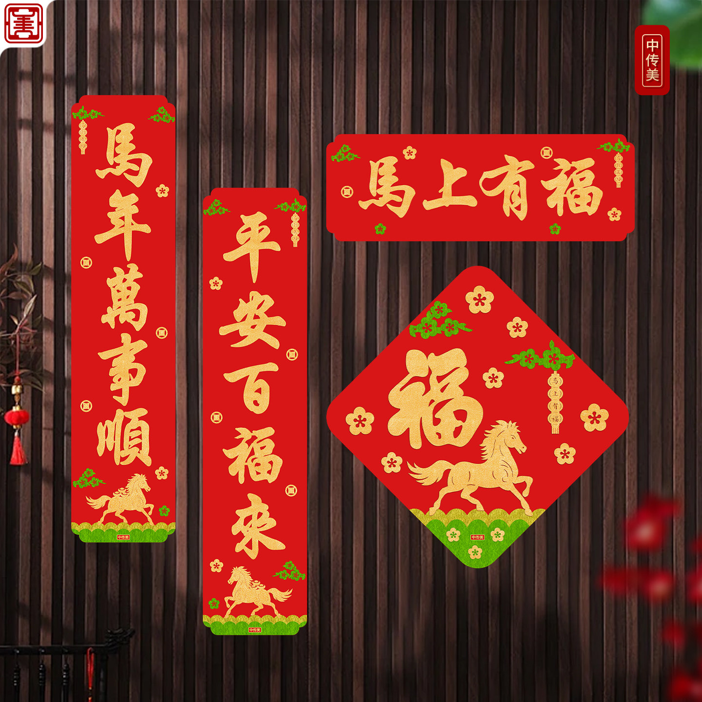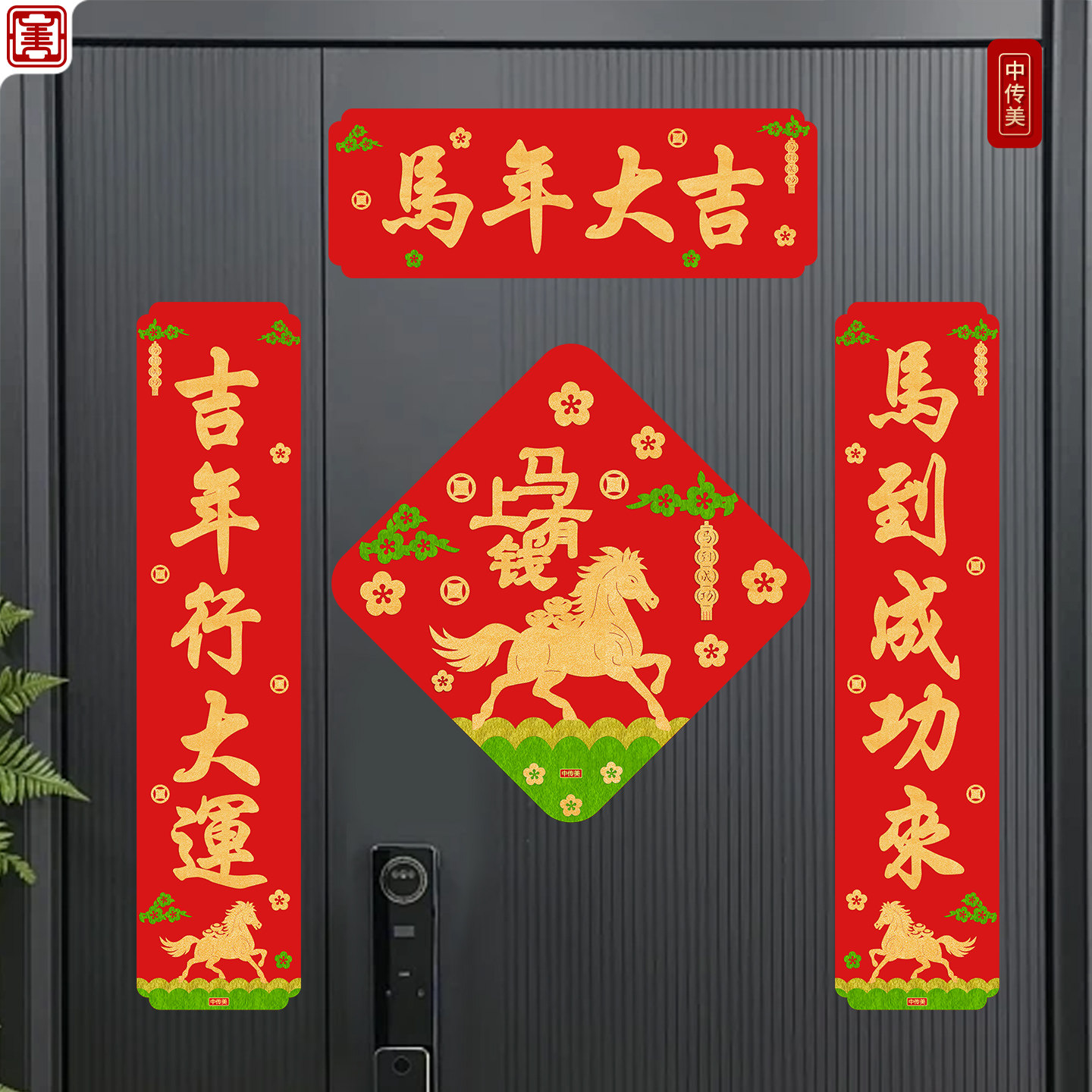 创意马年大吉五字春联新款入户门小对联磁吸门贴新年生肖卡通门联