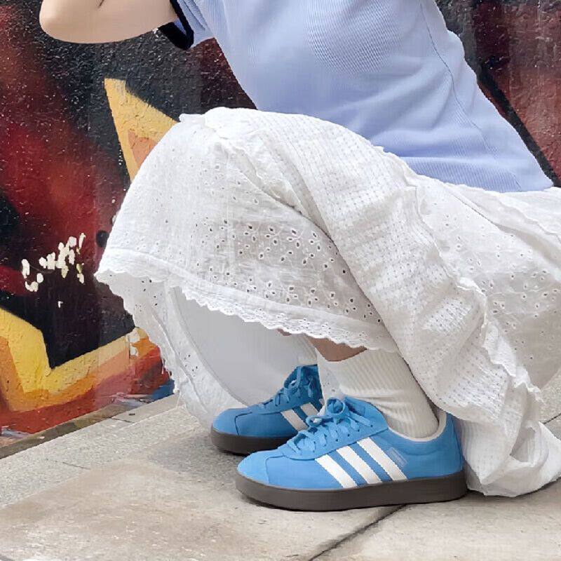 阿迪达斯adidas女男款运动鞋VL court蓝复古低帮板鞋休闲鞋JI0496