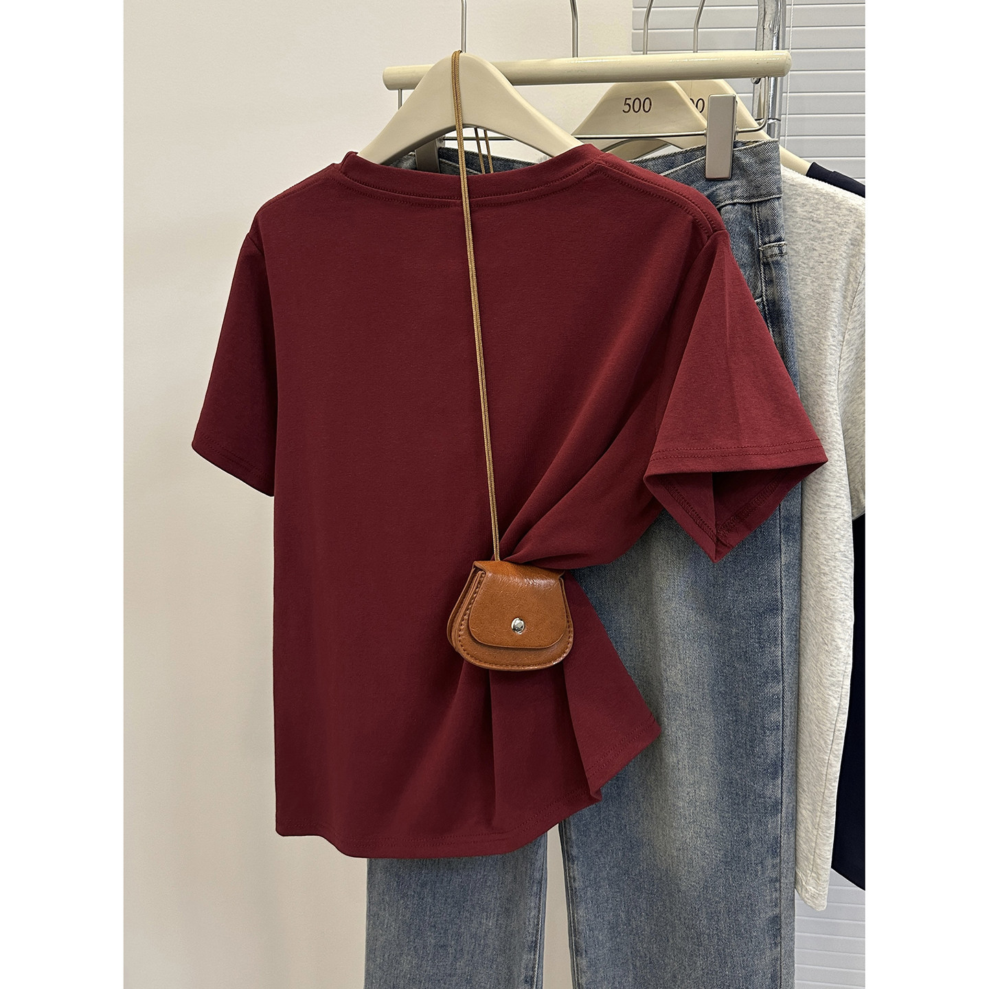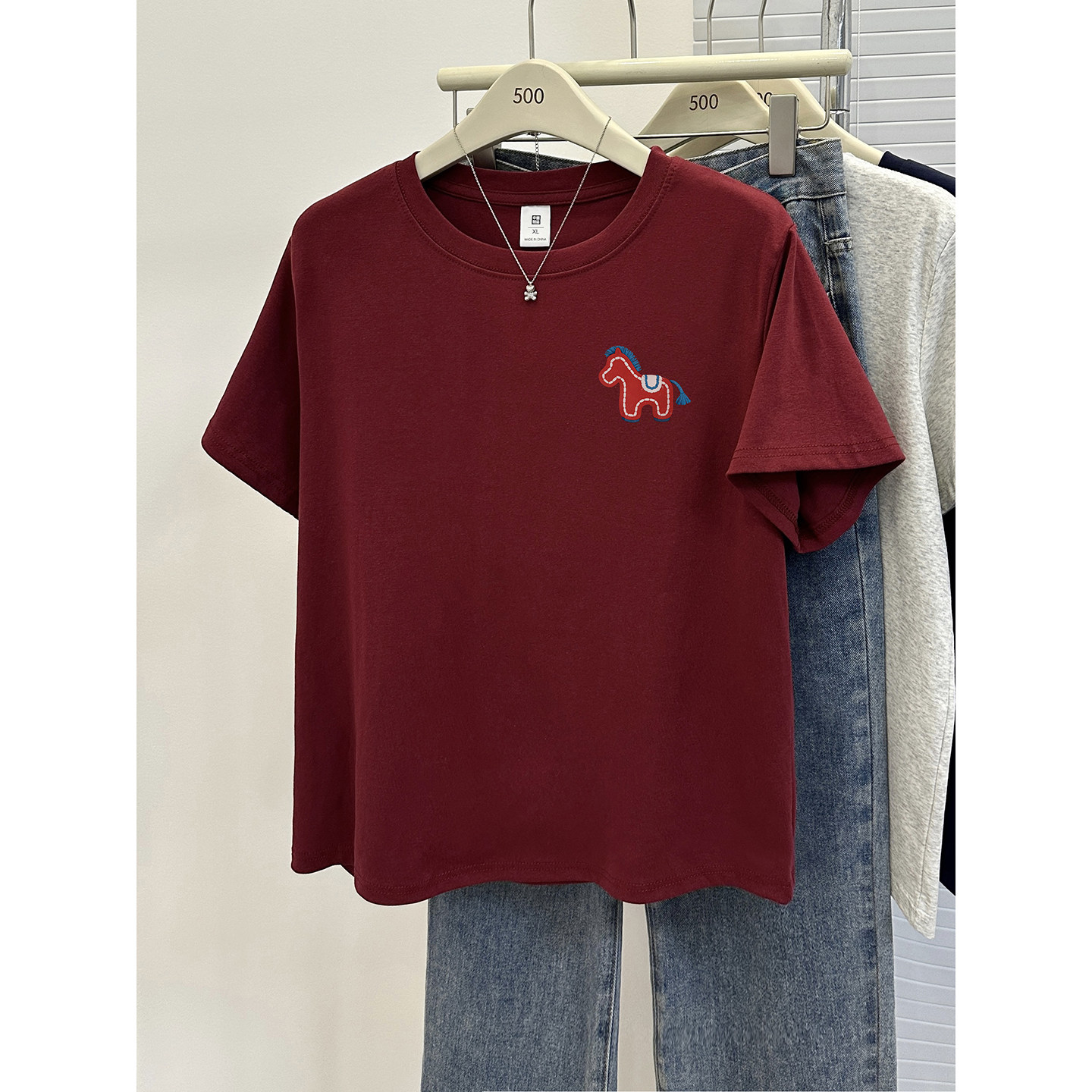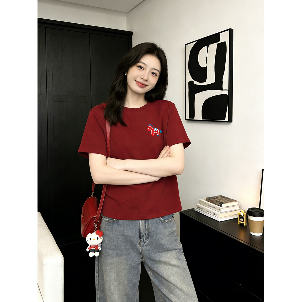 胖mm大码女装遮肉正肩圆领短袖t恤早春新款2026本命年马年红色衣