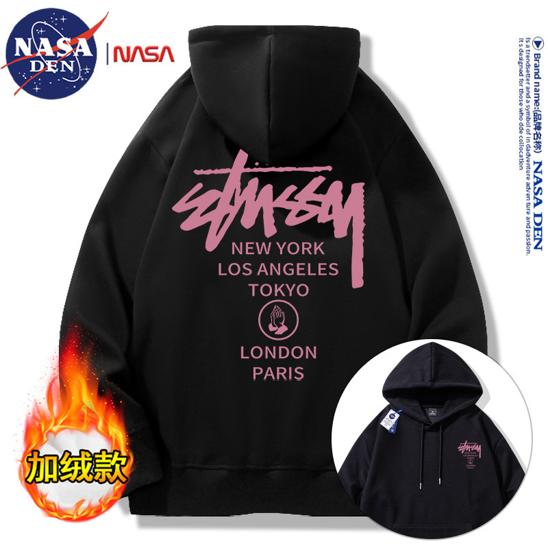NASA联名美式简约重磅长袖卫衣男女款时尚宽松百搭连帽加绒上衣服