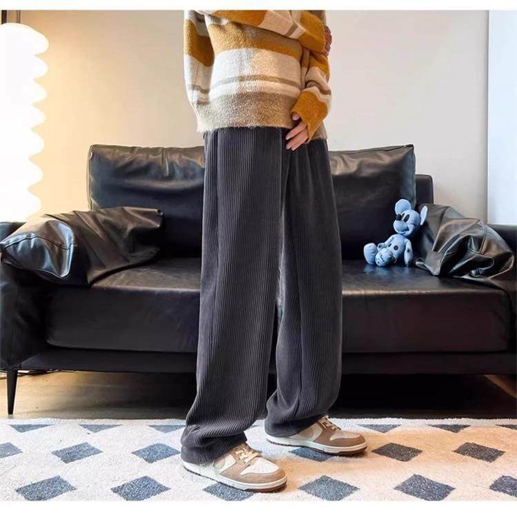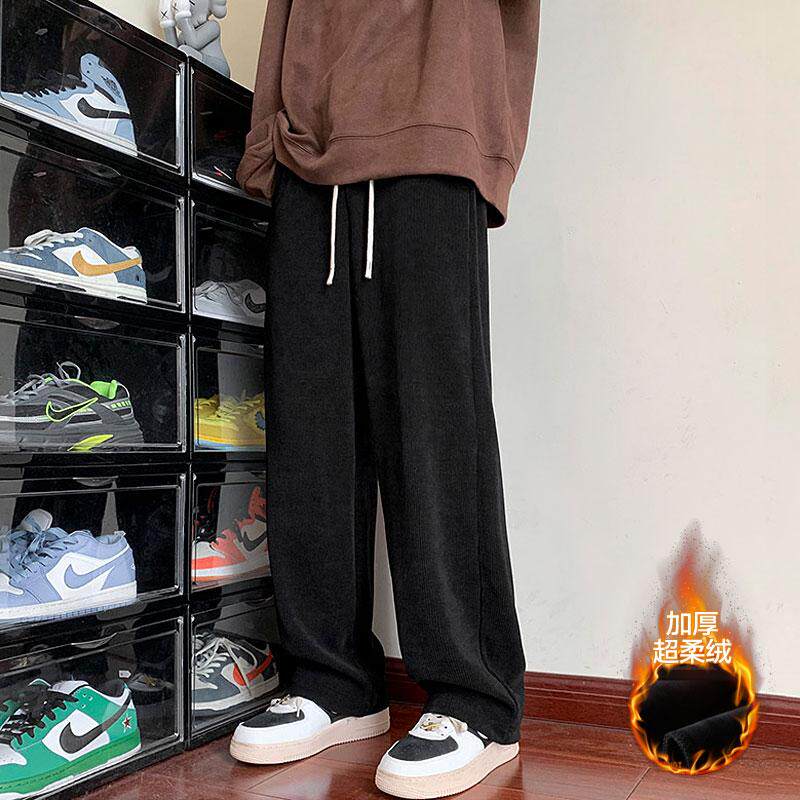 雪尼尔加长裤子男款高个子冬季加绒直筒卫裤男生灯芯绒阔腿休闲裤