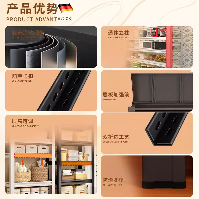 德国置物架多层阳台客厅卧室厨房洞洞板防尘帘落地式收纳铁架子