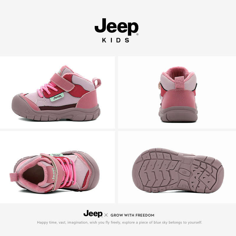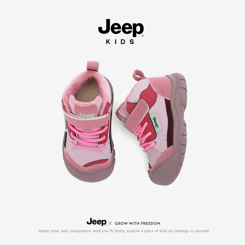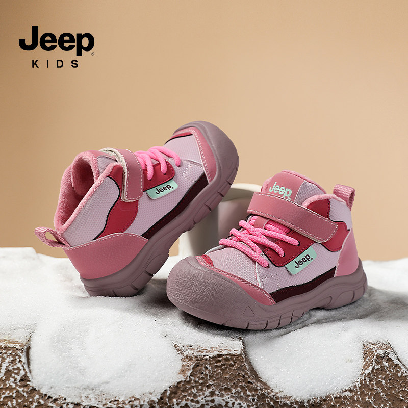 Jeep女童运动鞋冬季加绒小童二棉鞋防滑跑步鞋2026新款女宝宝鞋子