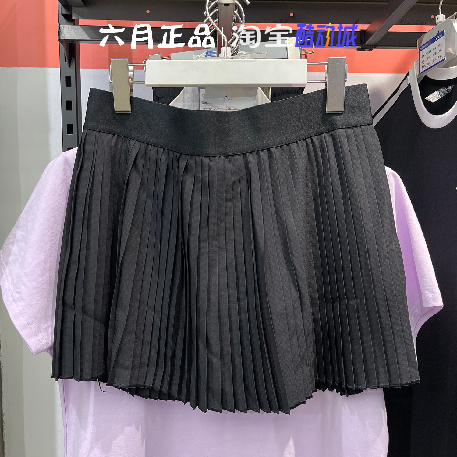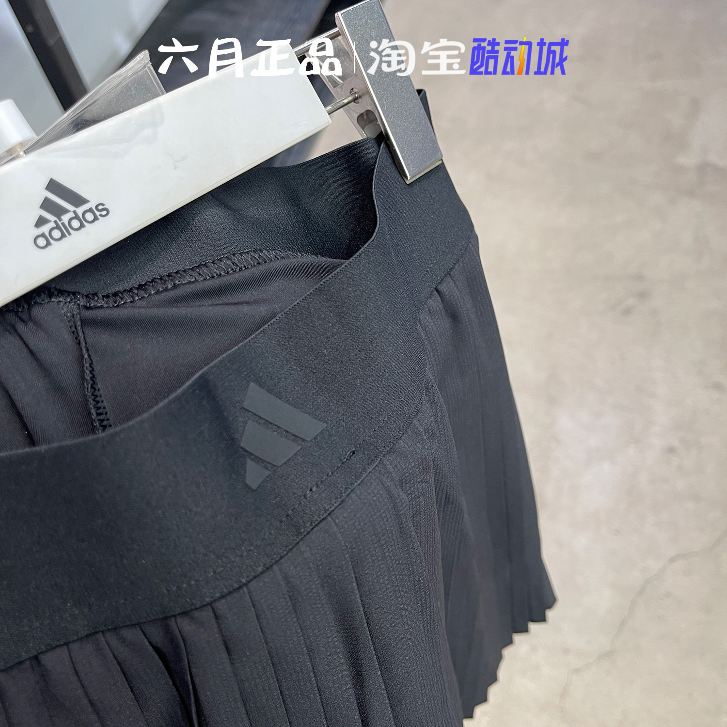 阿迪达斯25年夏季女子网球裙黑色速干透气防走光百褶裙 JD6117
