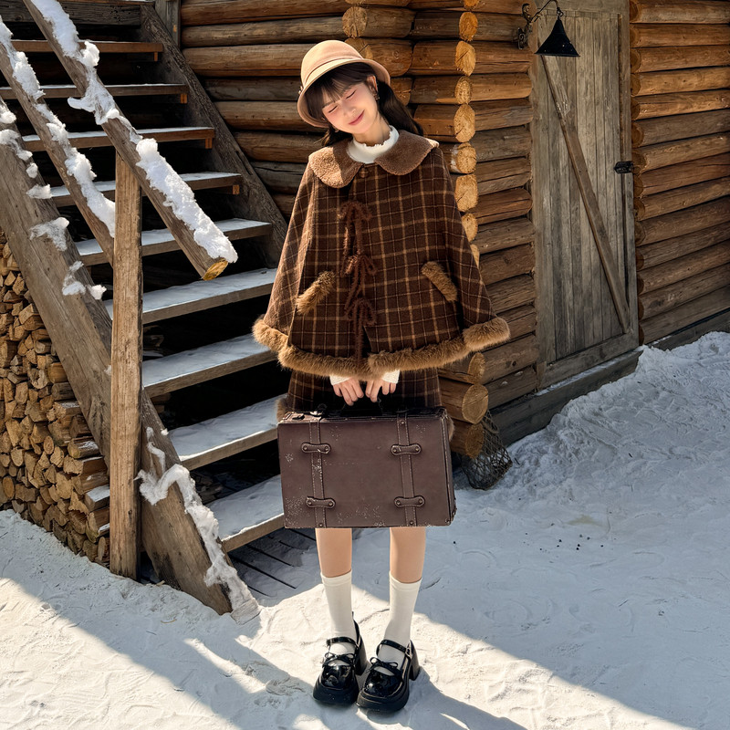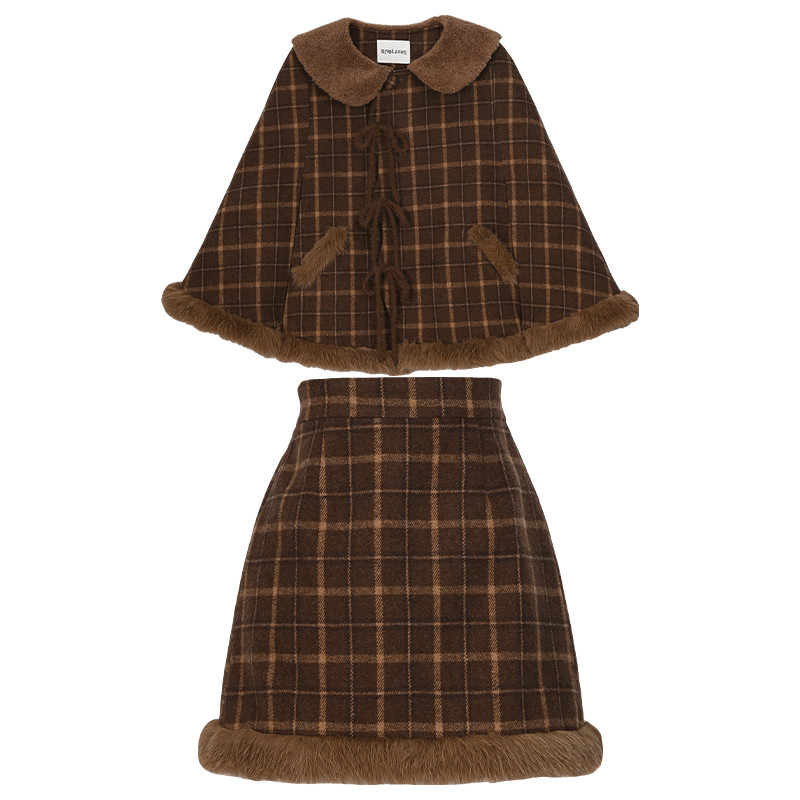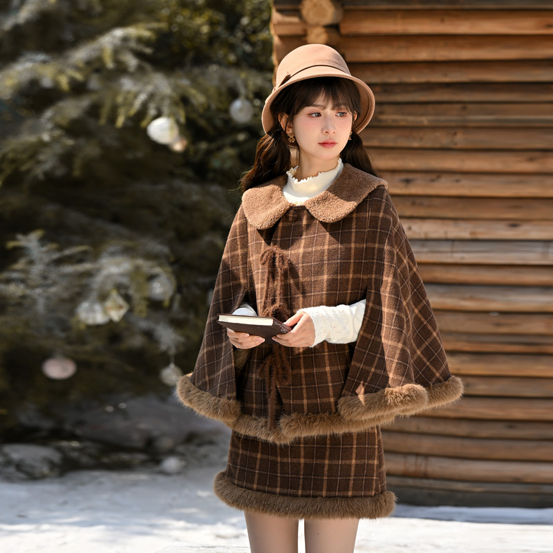 森女部落原创娃娃领毛呢斗篷半身裙时尚套装2026年秋冬装新款女装