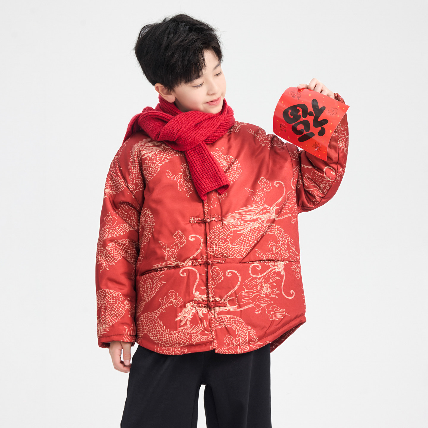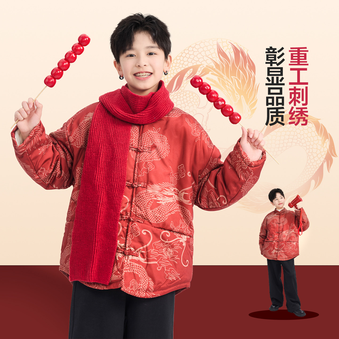 男童冬装新年红色拜年服唐装2026新款儿童男孩中国风加厚喜庆棉服