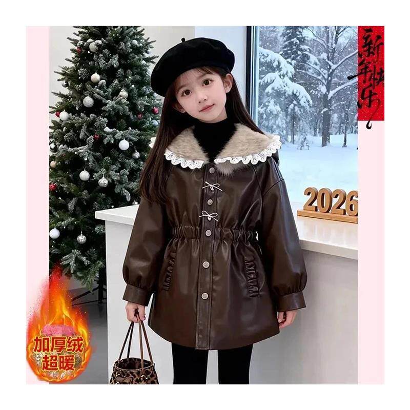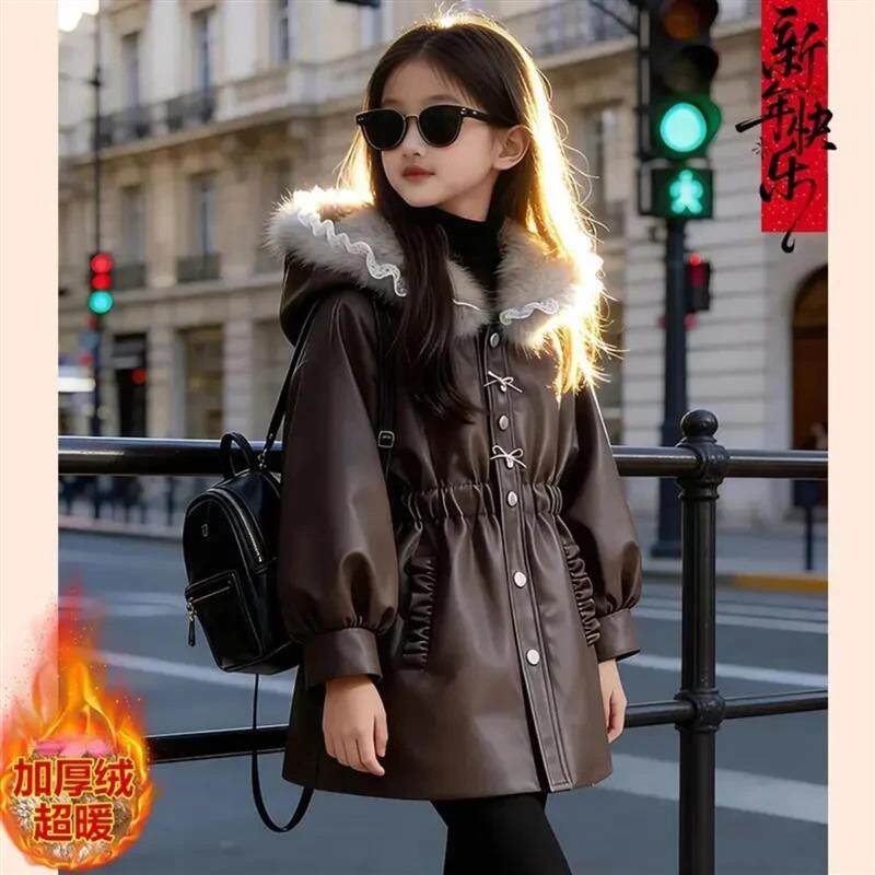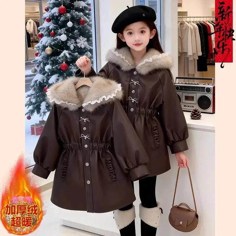 春瑞阁女童冬装加绒派克服外套冬季新款儿童中长款小香风加厚外套