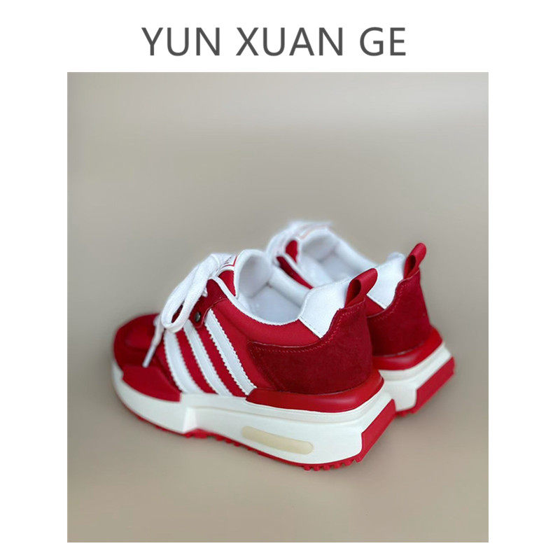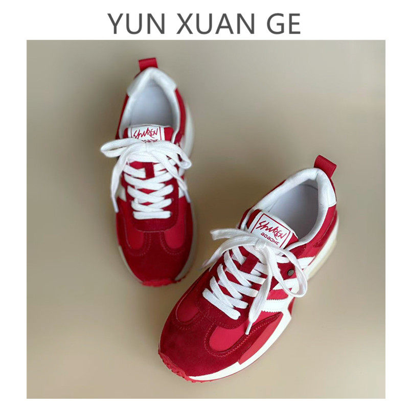 红色阿甘鞋女2025秋冬季新款复古小众加绒小码休闲运动德训老爹鞋