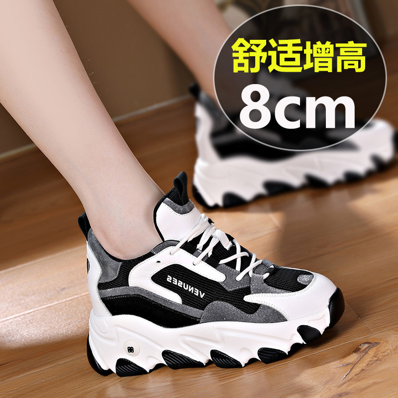 8cm内增高运动鞋女2026新款爆款春款软底防滑舒适休闲女鞋老爹鞋