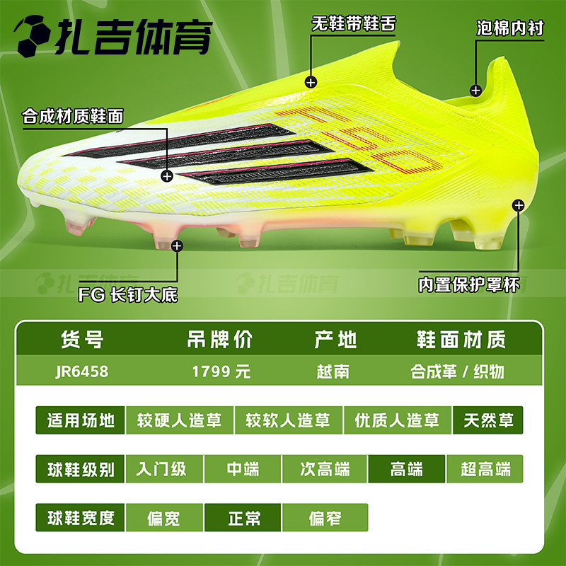 扎吉体育ADIDAS猎鹰ELITE FG无鞋带高端天然草比赛男足球鞋JR6458