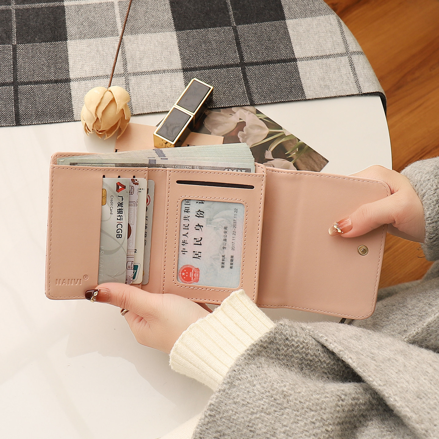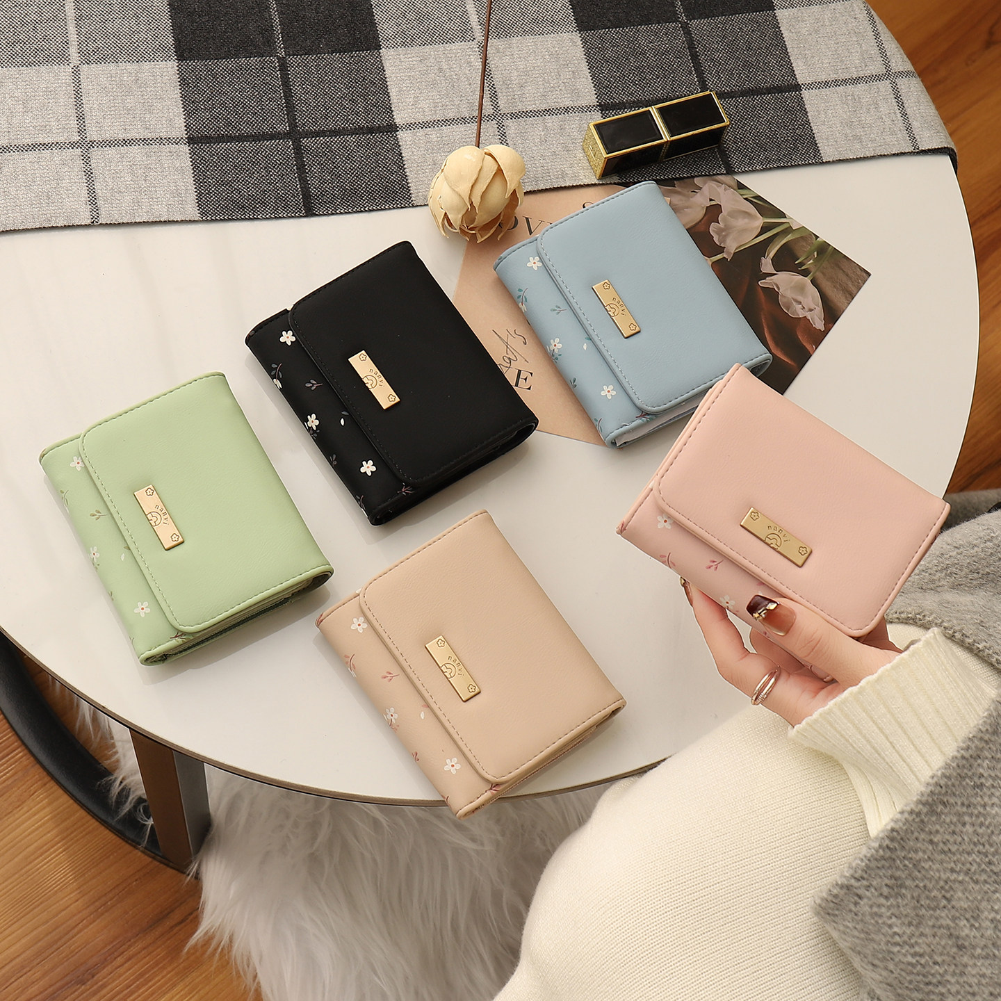 钱包女款2026新款小众大容量现金零钱包三折叠碎花钱包卡包二合一