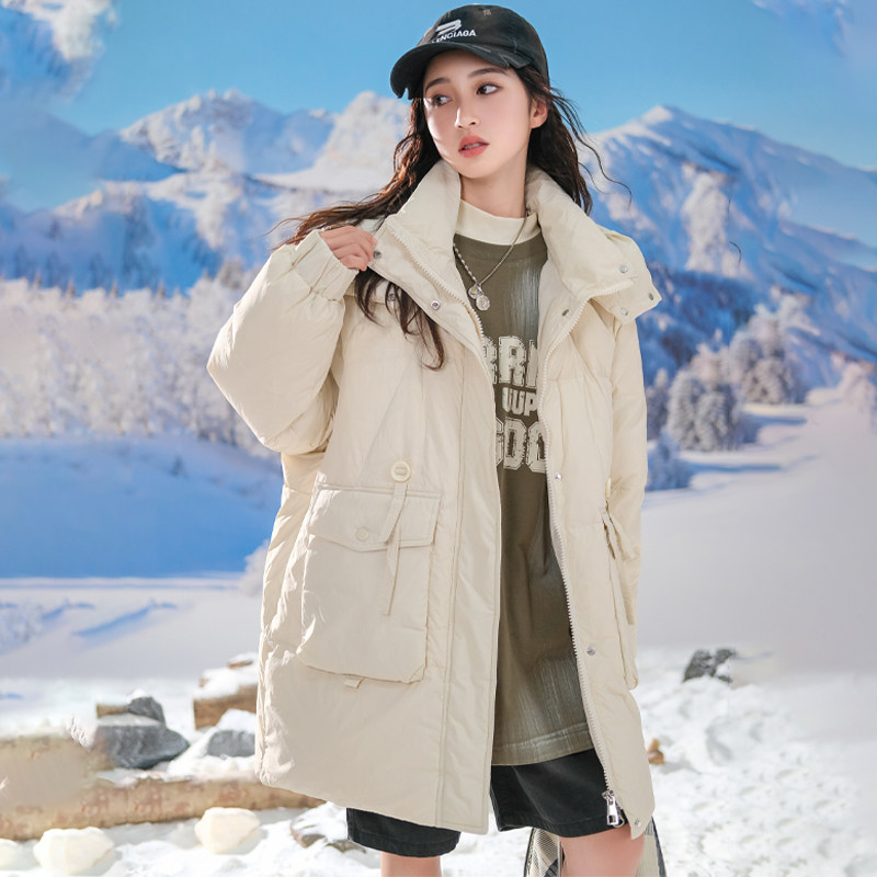 骄骄虎女大童羽绒服2024冬新款初中生连帽90白鸭绒青少年外套J805